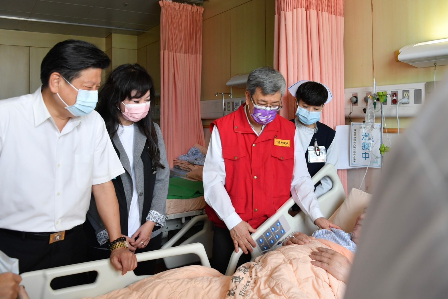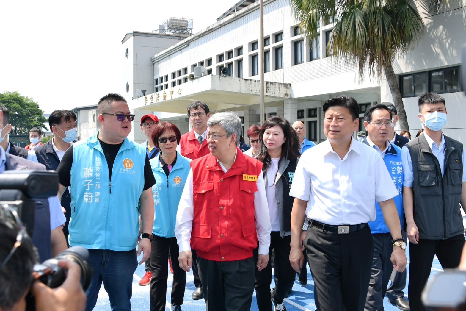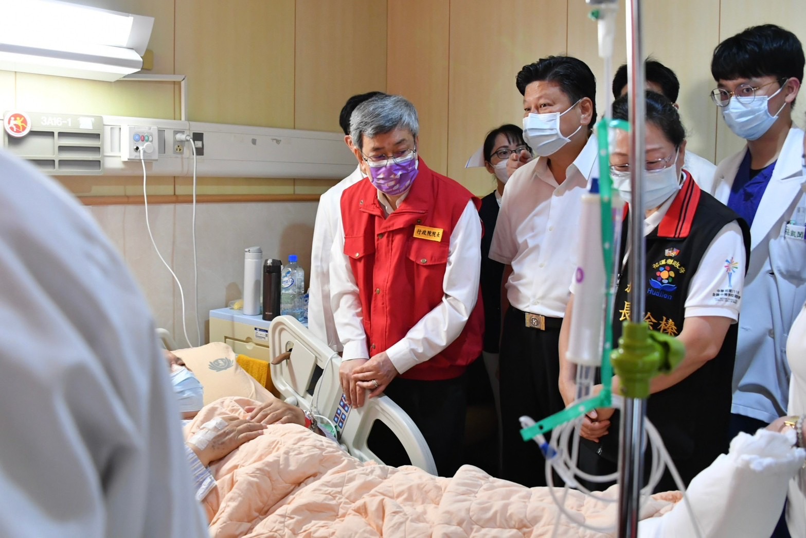 隨後,陳院長在徐榛蔚縣長等人陪同下前往花蓮慈濟醫院慰問受傷民眾,在林欣榮院長與李毅醫務秘書說明下,了解醫院收治狀況,並發放慰問金祝福傷者早日康復。接續,陳院長前往中華國小關心受災民眾收容安置情形,向受災安置居民加油打氣並表達慰問之意。陳院長也特別感謝國軍在震災第一時間投入相關救援救災工作,並快速組裝「野戰移動式沐浴機」予收容安置民眾沐浴使用。