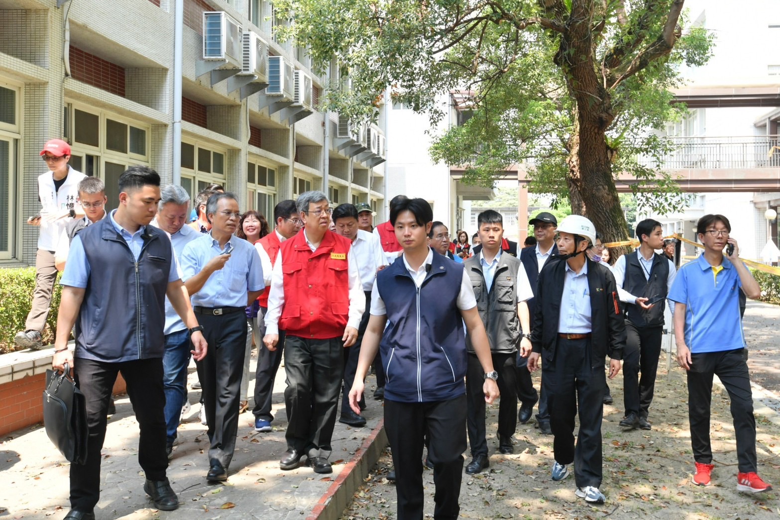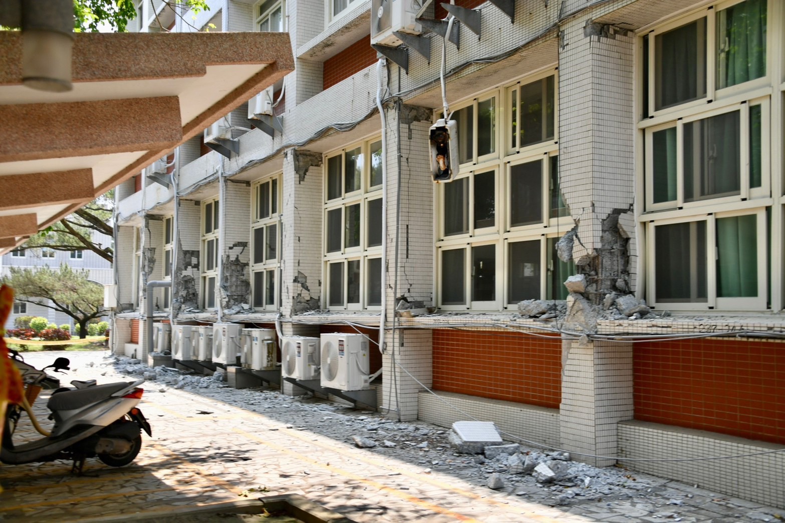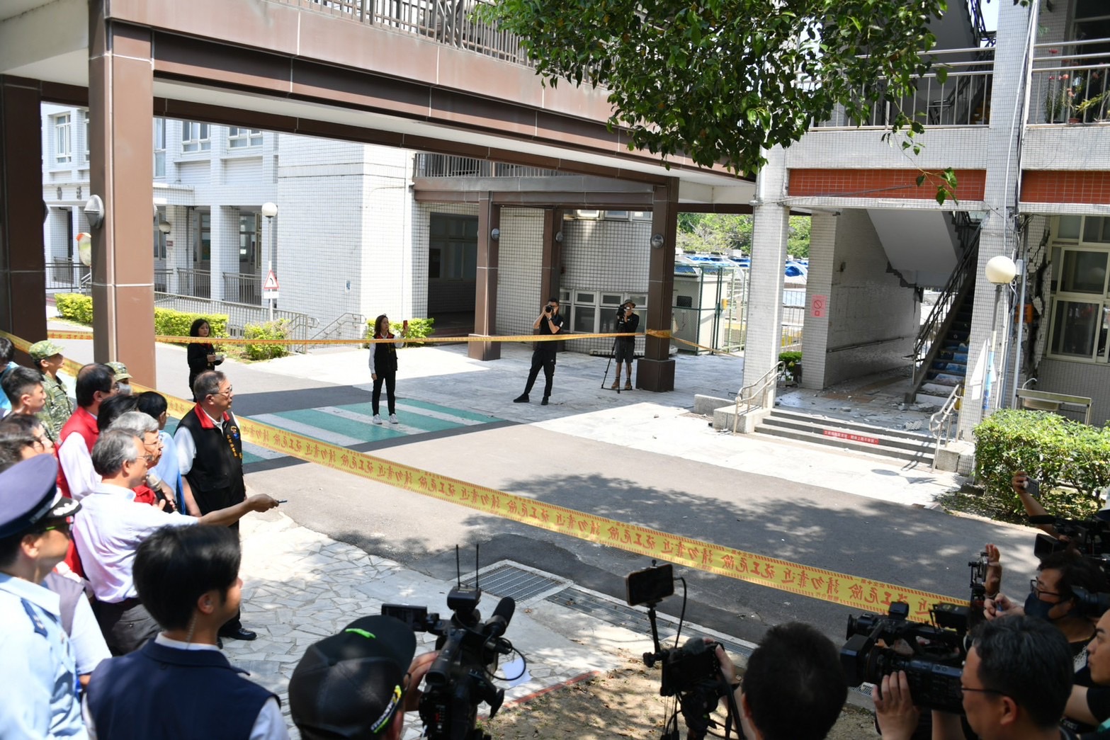 由於花蓮女中綜合大樓嚴重傾斜,教室梁柱鋼筋裸露扭曲,陳院長此行也特別前往花蓮女中視察受損情形。陳院長表示,感謝學校教官及老師在地震當下第一時間疏散學生,避免學生受傷。有關校舍受損建物拆除經費部分,將從校園天然災害復建經費支應,在建物拆除前,請校方務必留意全校師生安全;在拆除期間,如影響學生上課,也請研議是否改採線上授課方式;至於受損建物重建部分,也會請教育部研議,政府會與校方一起努力,儘早完成重建工作,讓孩子們能夠儘速恢復正常上課、快樂學習。