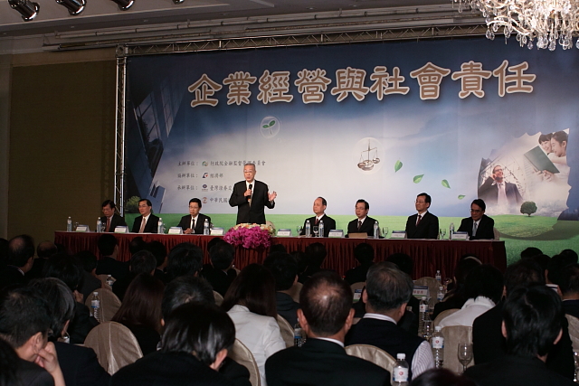 行政院長吳敦義今(14)日出席金管會與經濟部主辦的第三場「企業經營與社會責任」座談會,呼籲企業經營者繼續打拼,讓台灣經濟更上層樓,且將經濟打拼成果讓全體國民一起分享,善盡社會責任。