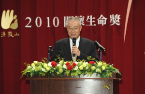 行政院長吳敦義今(10)日出席「法鼓山2010關懷生命獎頒獎典禮」,除肯定得獎者下大願、用智慧來行慈悲心,同時強調政府一定要回應民間的需求,讓這個社會更和諧、更有愛,來印證我們對台灣這塊土地的永恆的愛心。
