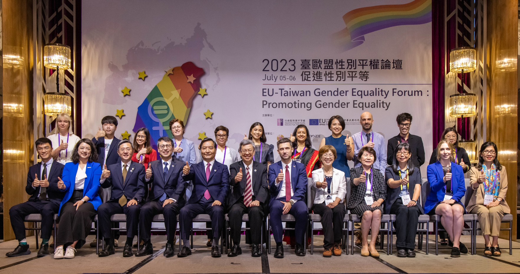 7月5日到6日為期2天,「臺歐盟性別平權合作暨訓練架構計畫」(GECTF, 2019-2023)最後一年的總結活動「2023年臺歐盟性別平權論壇-促進性別平等」圓滿閉幕,來自歐洲、美國及亞洲各國推動性別平權的重要推手,彼此借鏡激盪創新想法,觀摩並學習我國及各國性別平等政策發展策略及成果,凝聚共識與願景,攜手營造更為性別平等、多元尊重的永續社會。