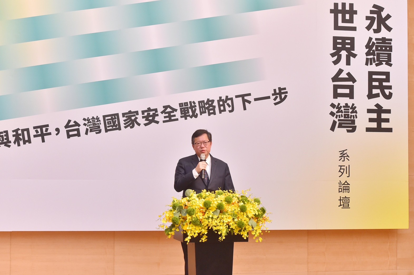 行政院副院長鄭文燦今(27)日出席青平台「永續民主 世界台灣」系列論壇開幕式時表示,青平台基金會透過舉辦本次論壇,匯集眾人智慧,探討「民主、安全與和平」、「創新經濟與共好社會」及「淨零轉型與數位轉型」三大議題,相信將能為臺灣帶來更多向上提升的力量。政府也會持續捍衛臺灣自由民主價值、促進國內經濟發展、推動淨零轉型與數位轉型,以打造更溫暖堅韌的臺灣。
