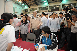 「2009愛與關懷就業博覽會」今(24)日在南台科技大學舉行,為雲嘉南地區的求職民眾提供就業媒合機會,行政院長吳敦義出席致詞時表示,面對當前經濟環境,政府最重要的是提供短期就業機會外,更重要要創造長期與穩定的工作機會,就業媒合就是推動該目標的重要方式,今天就業博覽會預估可媒合3千多個工作機會。