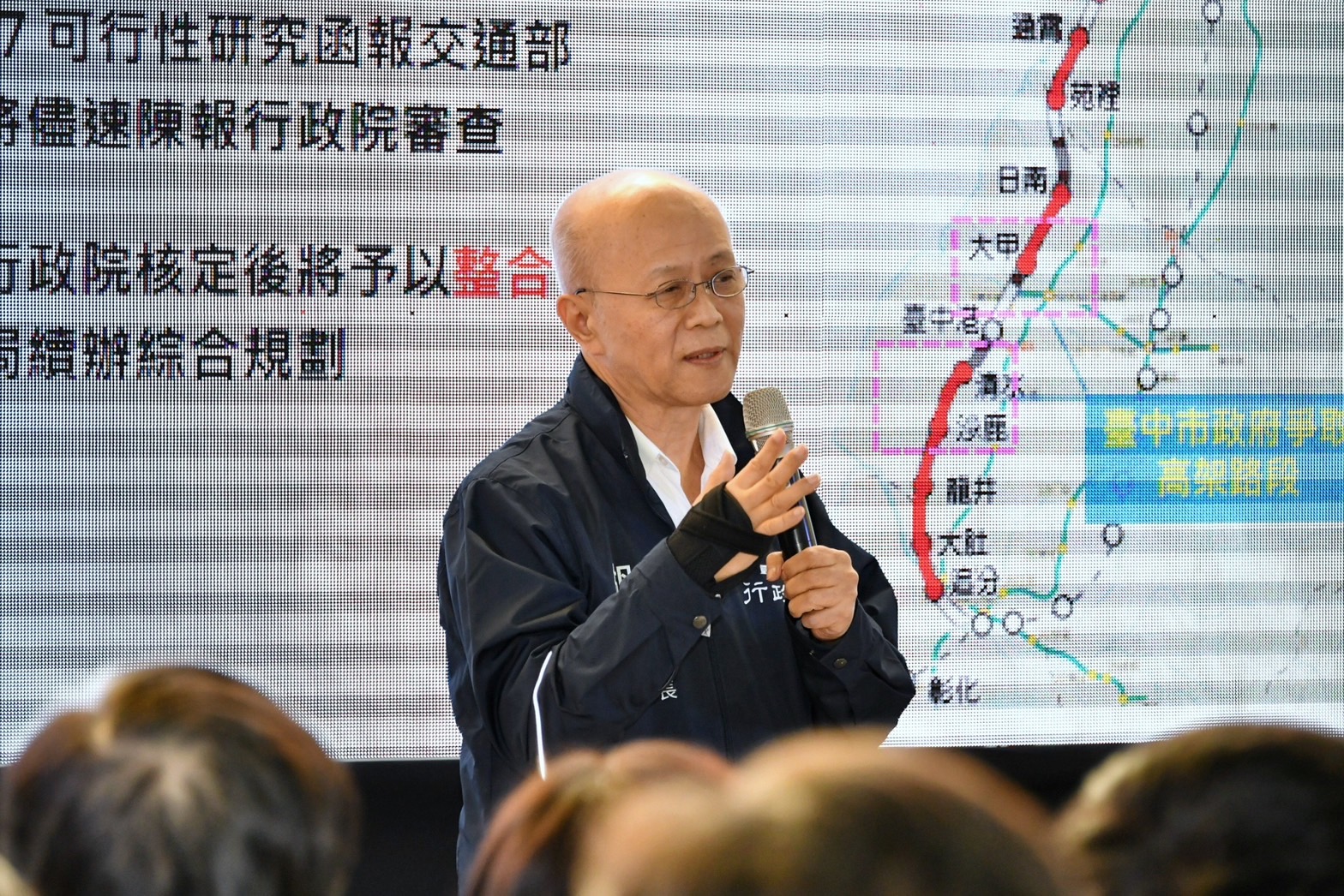 陳院長指出,臺中市政府也向交通部提出「大臺中山海環線高架可行性研究」,規劃在大甲、清水沙鹿區段進行鐵路高架化工程,期盼本案與上述海線雙軌化計畫在行政院核定後,能夠予以整合,由鐵道局辦理後續綜合規劃,中央也會與地方攜手合作,共同分擔經費,加速推動地方建設;此外,針對臺中捷運藍線規劃案所涉及的經費增加分擔方式、臺灣大道於施工期間可能衍生的交通衝擊,以及臺鐵沙鹿站與捷運共構等問題,也請臺中市政府儘速提出相關說明,以加速審核作業。