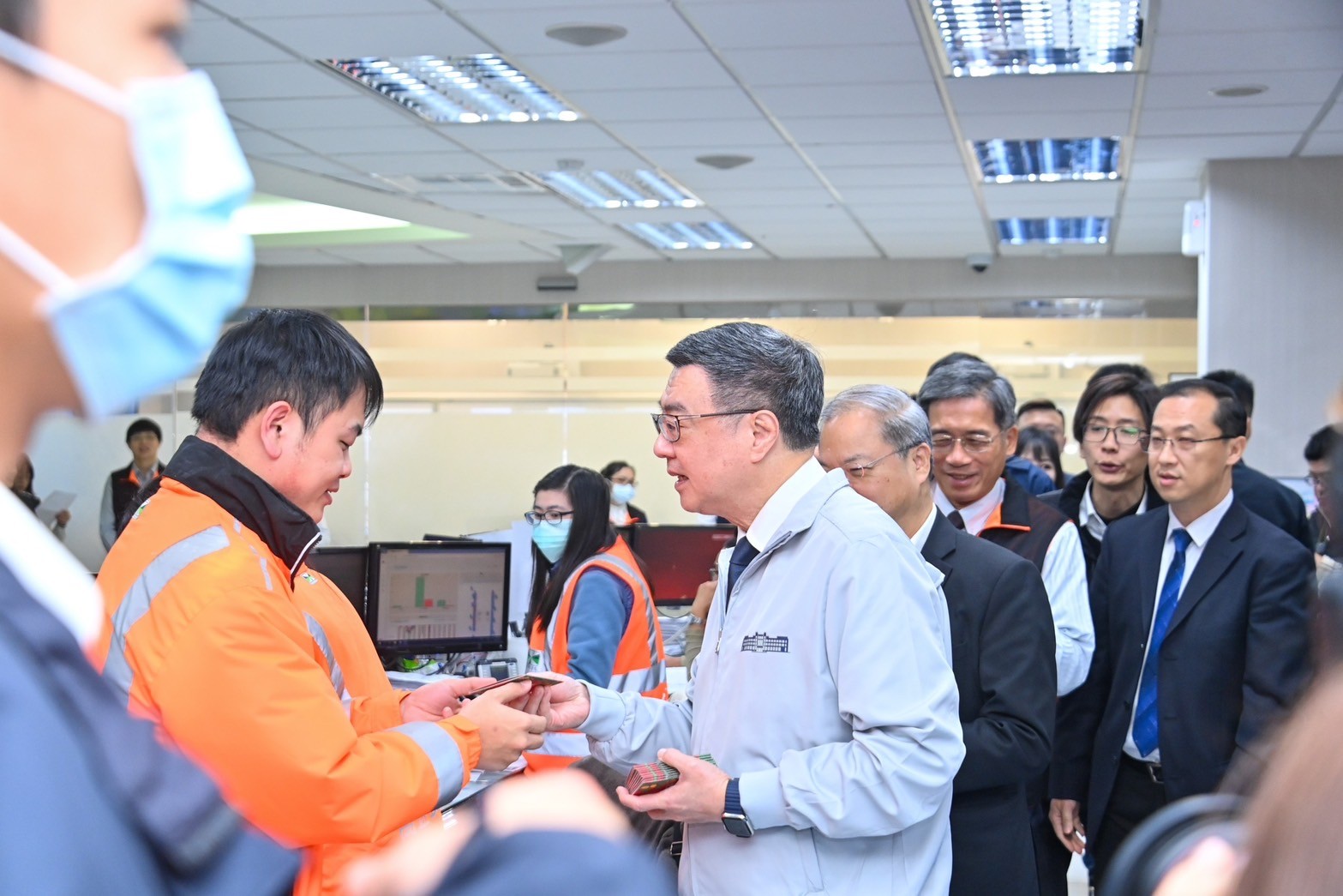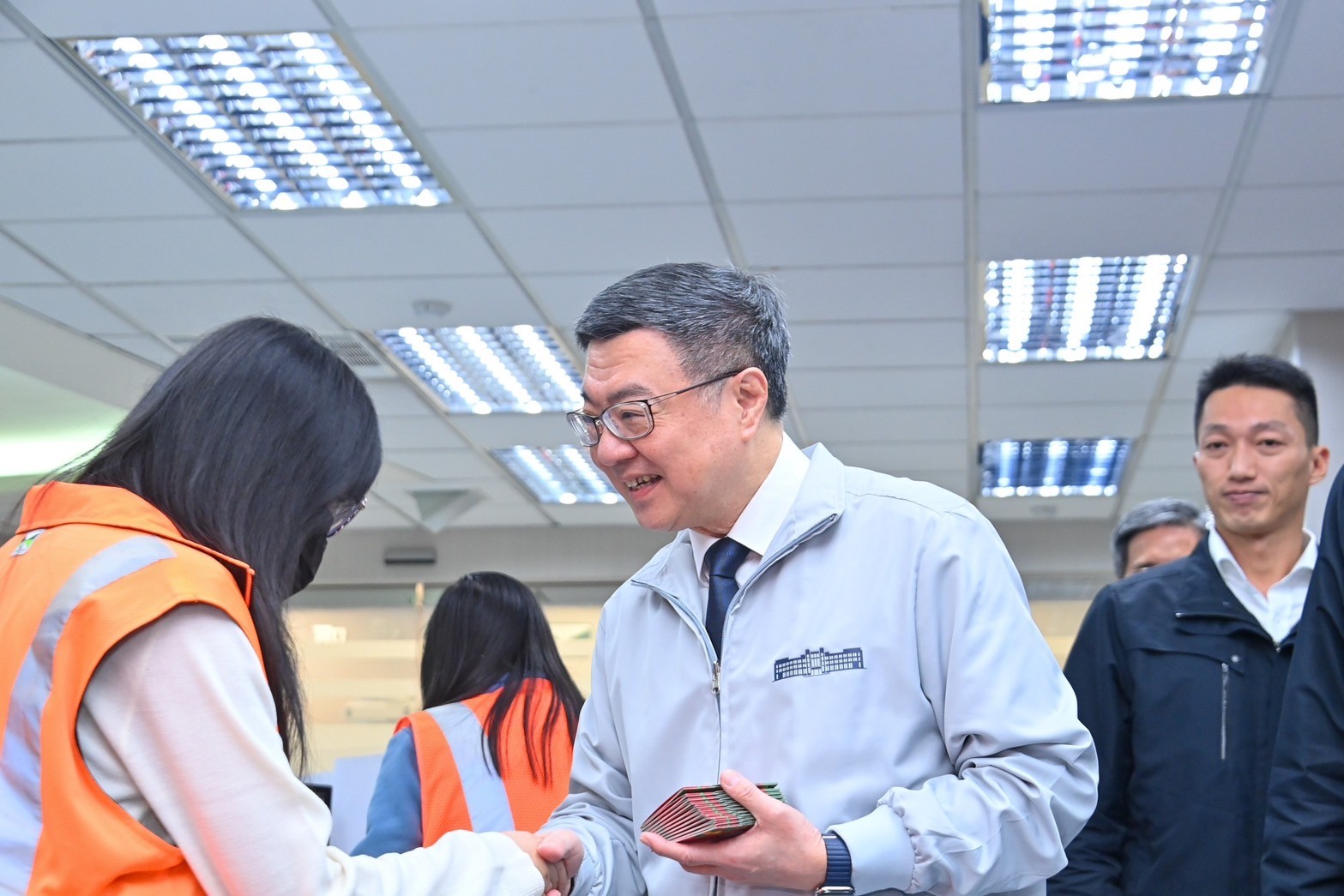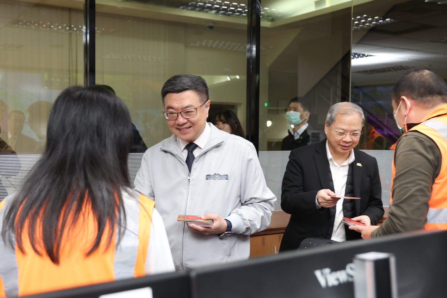 此行,卓院長抵達後,首先偕同行政院龔明鑫秘書長、李慧芝發言人、交通部陳彥伯次長、內政部董建宏次長等人聽取交通部高速公路局趙興華局長說明「春節連假國道疏運辦理情形」簡報,了解春節國道疏運規劃、各項應變準備,以及「高速公路1968」APP提供之便民資訊。致詞結束後,卓院長致贈賀歲福袋慰勉執勤同仁,分別由高公局趙興華局長、內政部警政署國道公路警察局顏旺盛局長代表受贈。隨後,卓院長視察執勤同仁作業情形,並逐一握手打氣,肯定其辛勞付出。