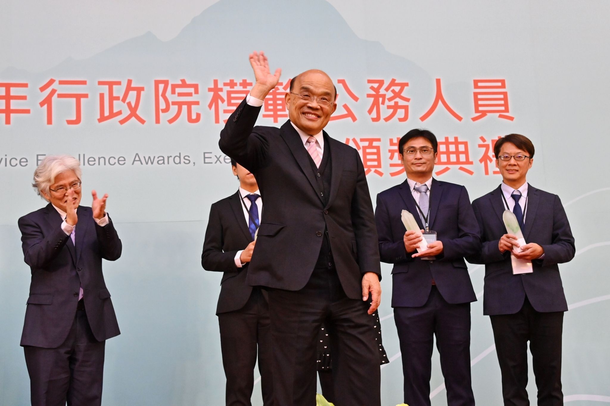 蘇院長指出,他從擔任屏東縣長、臺北縣長,到今天的行政院長,深知公務員要獲獎實屬不易,因此即使是一塊紀念牌,都應該妥善製作,讓獲獎者可以與家人分享榮耀。而他也交代施人事長要將獲獎者欲感謝的對象,或曾經一起努力及給予助力的同仁,邀請他們一同出席頒獎典禮,藉此機會感謝這些支持的力量,並一同分享榮光。