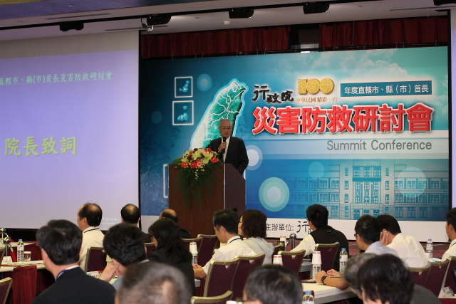 吳院長表示,根據世界銀行2005年年鑑,台灣是全球最易受到地震、颱風和水災等複合性災害侵襲的國家之一,總統也經常提醒,台灣是天然資源很少,但天然災害不少的國家,所以更要格外重視各項天然災害所造成的衝擊及對國人可能造成的傷害。