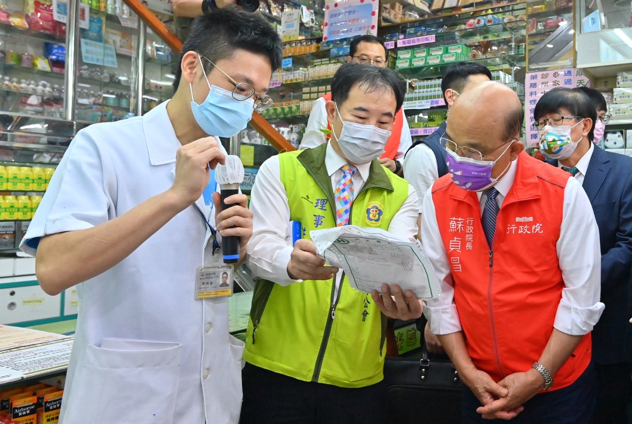 蘇院長於視察前受訪時表示,疫情持續兩年多來,中央、地方政府及人民皆一起努力抗疫,他今天特別前來藥局視察,感謝藥師、藥劑生及藥局等相關同仁,自疫情爆發以來,從協助販售實名制口罩,到現在的快篩試劑,甚至於親自送藥到確診個案住家,並詳細解說相關用藥注意事項,勞苦功高。