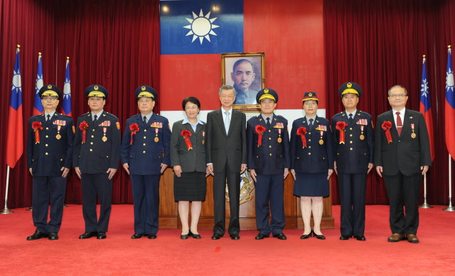 今天的慶祝大會並頒獎表揚了28位模範警察及8位資深績優警察。陳院長說,有受獎警察服務了44年,並拿到44年甲等考績;還有兩位警察各服務34、35年,代表許多警察同仁都與警察節一起成長,因為35年前行政院核定6月15日為警察節。