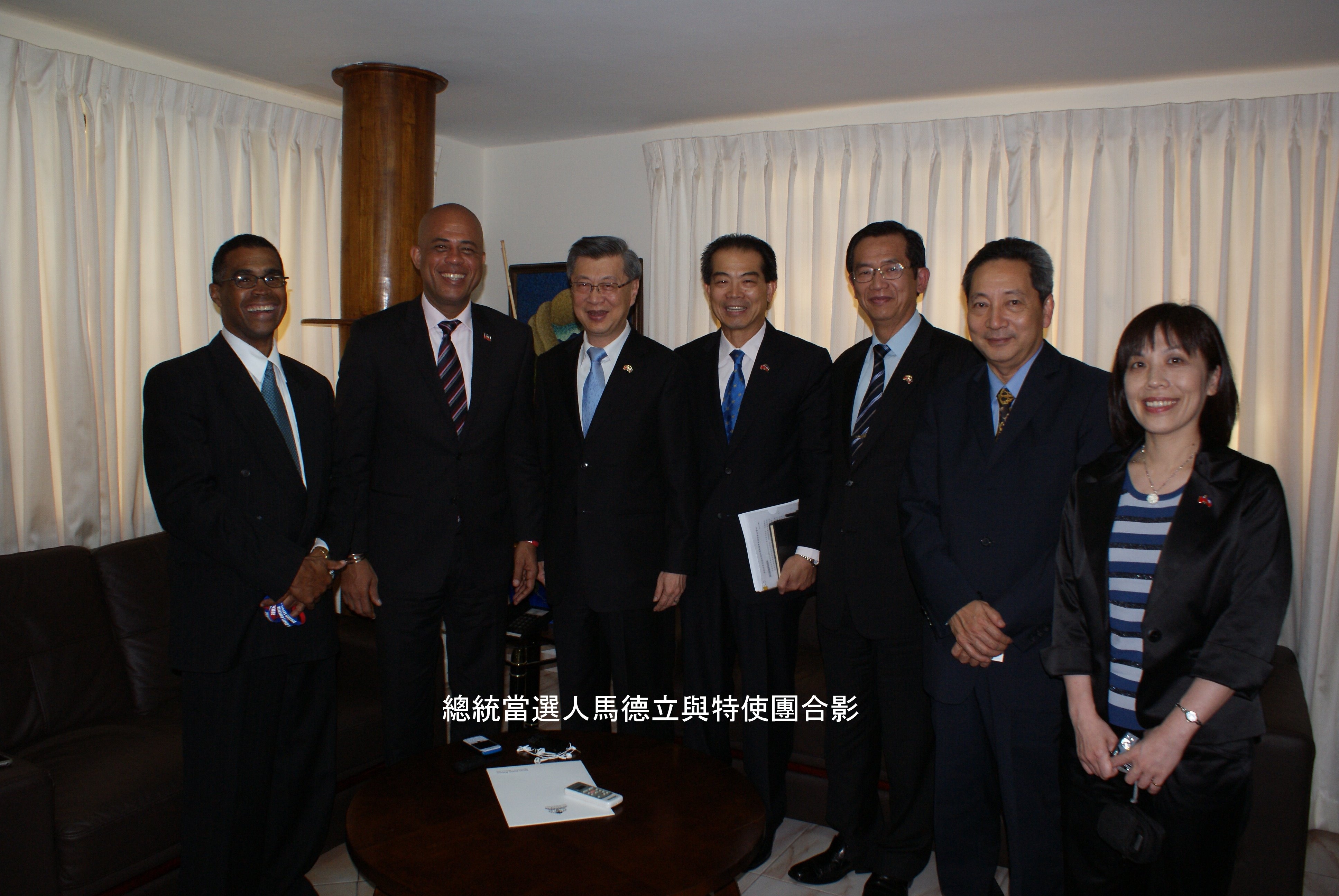 陳副院長抵達海地後,於5月13日拜會即將卸任之浦雷華總統及行將就任之馬德立總統,之後並與擔任看守任務之總理貝勒里福晤談。浦雷華總統針對陳副院長所提雙方建交甫滿55年,其間互相合作,誠意交往,尤其是我國協助海國各項建設及地震災後重建事宜,表示該國政府之謝意,並如數家珍地說明我國對海地之各項協助。浦雷華總統表示擬於退休後協助該國農業發展,陳副院長亦就以往在農業金融機構服務之經驗,說明生產、銷售、信用在農業發展過程之重要性。普雷華總統並表示,將把台灣友人真誠協助的事蹟告知新任總統,繼續維持雙方友好邦誼。