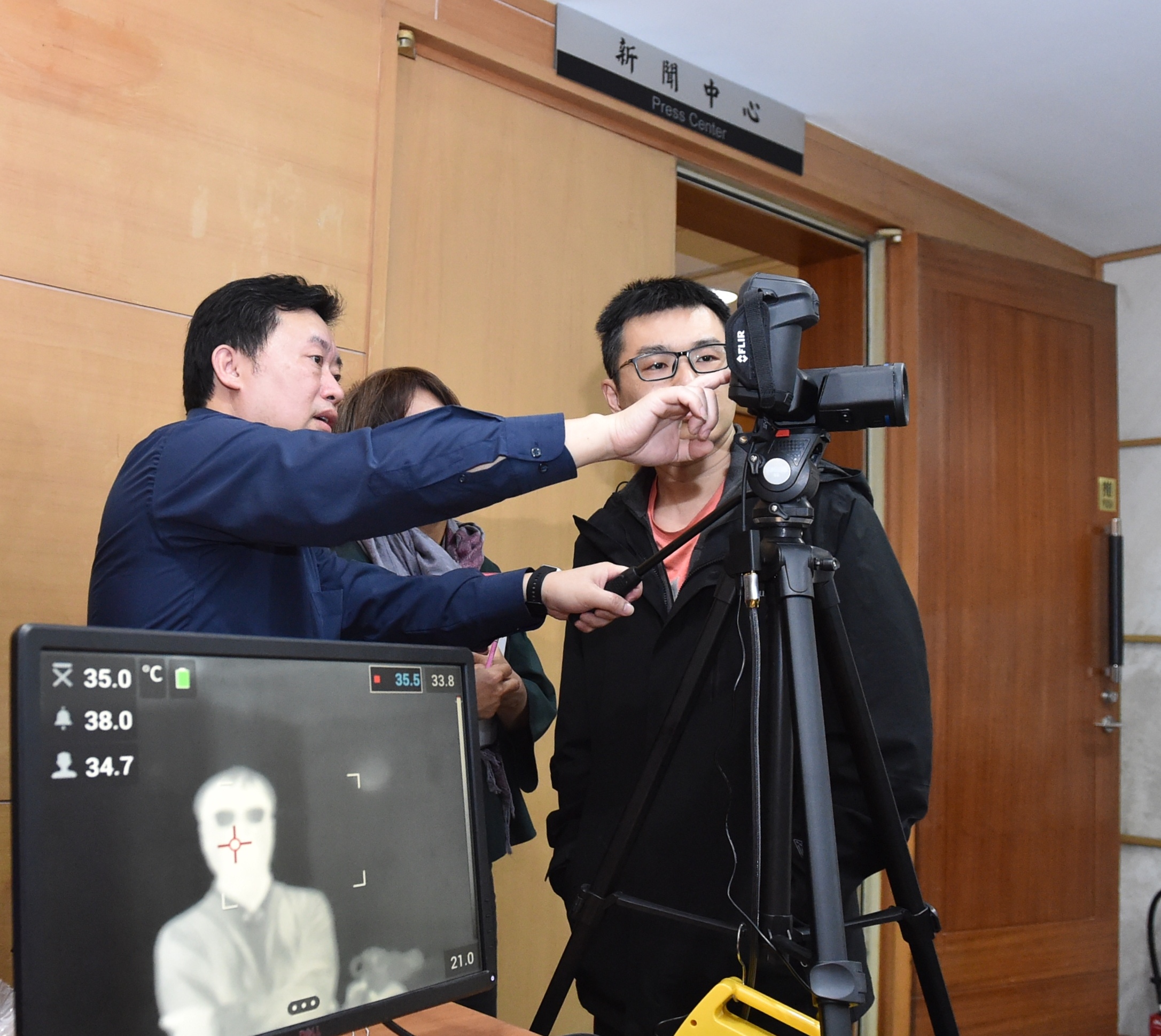 行政院發言人Kolas Yotaka今(11)日表示,為加強COVID-19(武漢肺炎)防疫並維護環境清潔,行政院新聞中心及記者工作室自即日起,將實施每周兩次定期環境消毒,除了在新聞中心入口提供乾洗手,還於新聞中心門口加裝「紅外線熱像儀」檢測進出人員體溫,若有發燒症狀者將限制進入會場,以維護現場媒體及參與記者會人員的健康。