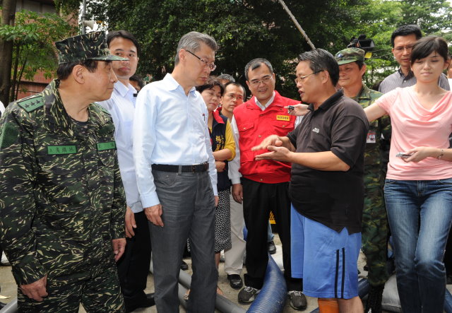 陳院長上午是在秘書長林益世、發言人胡幼偉、研考會主委朱景鵬及桃園市長蘇家明等人的陪同下,前往桃園市桃鶯路與朝陽街等處視察國軍救災情形,稍後並陪同總統至氣象局聽取簡報。