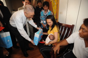 吳院長提前祝賀村民們春節愉快,致贈年節加菜金3萬元及春節慰問金每戶2000元,並特別贈送一套新衣給在此出生、即將滿月的忠誠寶寶高諾威,祝福他新年快樂、未來一切順利平安。他同時感謝屏東縣府同仁、紅十字會及介惠基金會等社會福利機構夥伴們的服務,除了維護鄉親們日常生活的軟硬體設施,更充實溫暖了鄉親的生活及心靈。