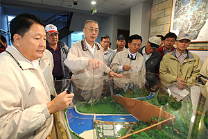 經過連日來的降雨,基隆河的水位已急速上升,員山子分洪隧道正依據標準作業程序進行分洪,吳院長親自到管理中心頂樓視察河水分流的實際作業情況。