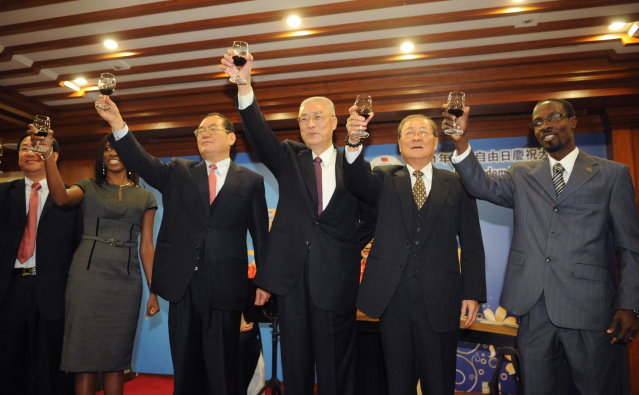 行政院長吳敦義今(23)日晚間宴請出席「2011年世界自由日慶祝大會暨世盟年會」貴賓時表示,中華民國在台灣遵循國父孫中心先生三民主義的理想,經濟的繁榮、全民健保的成功、教育普及等均獲得舉世的肯定,美國小布希總統並曾肯定馬總統的當選,稱譽台灣的民主成就堪為自由世界的民主燈塔。