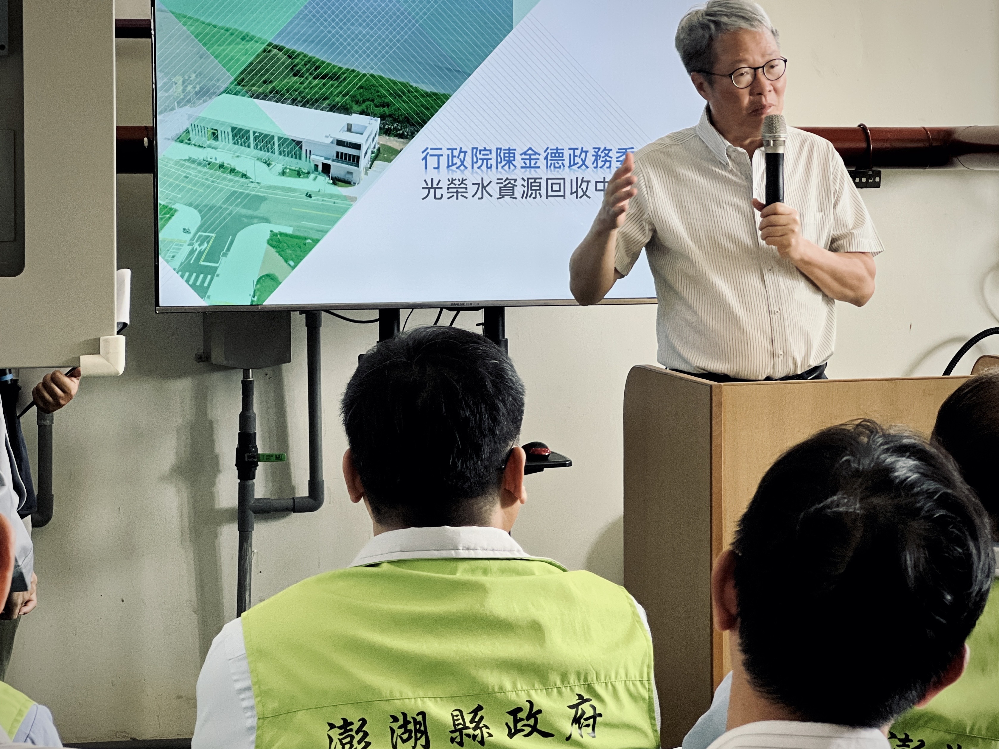 行政院政務委員陳金德今(10)日率領相關部會前往澎湖,在陳光復縣長陪同下,視察海水淡化廠及水資源中心,並督促民生用水及污水處理相關工程進度,陳政委表示將研議澎湖污水建設專案計畫,讓每一滴污水都能經過處理後再排放,打造乾淨的水循環,讓澎湖海洋及觀光資源永續。