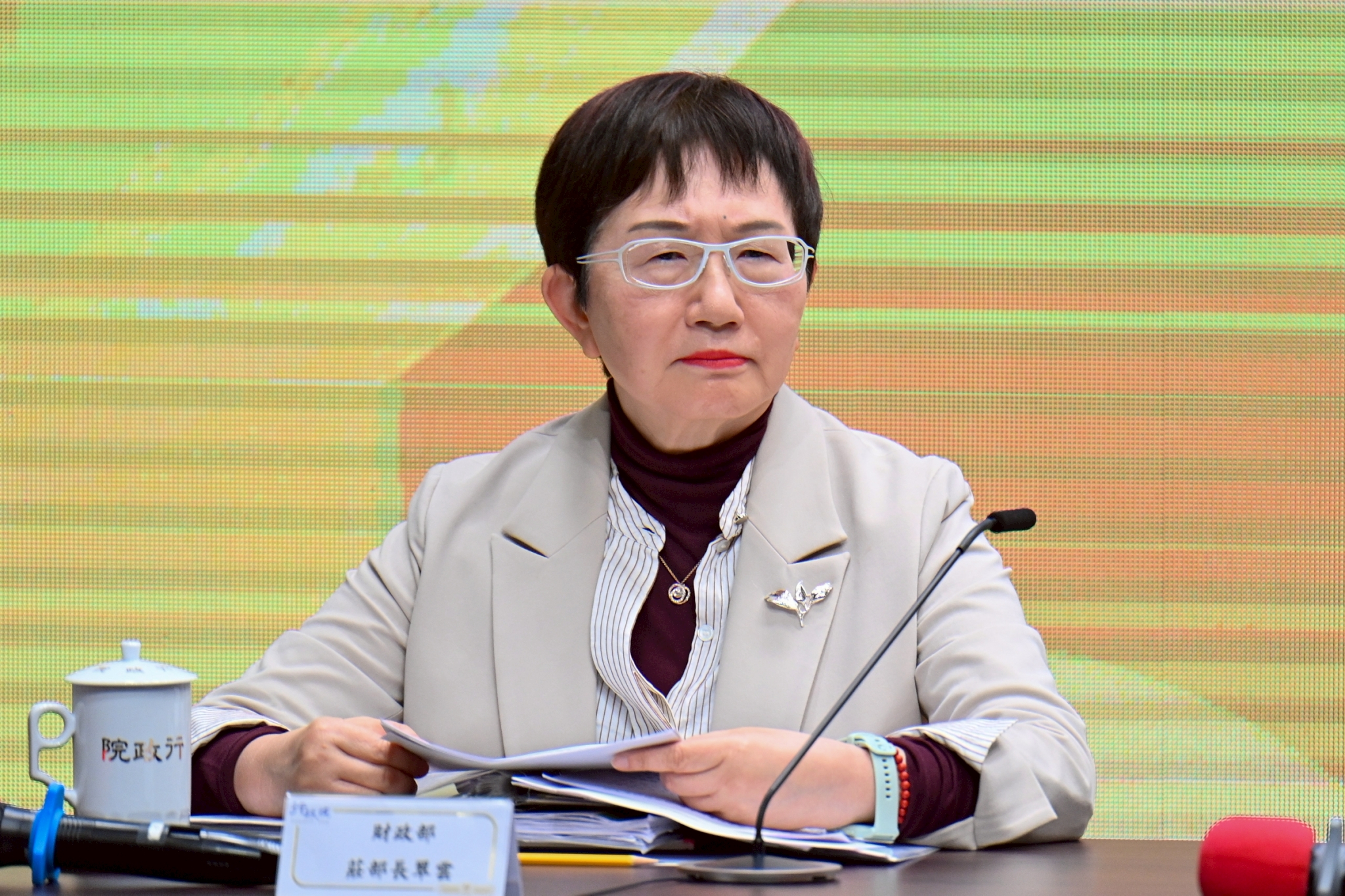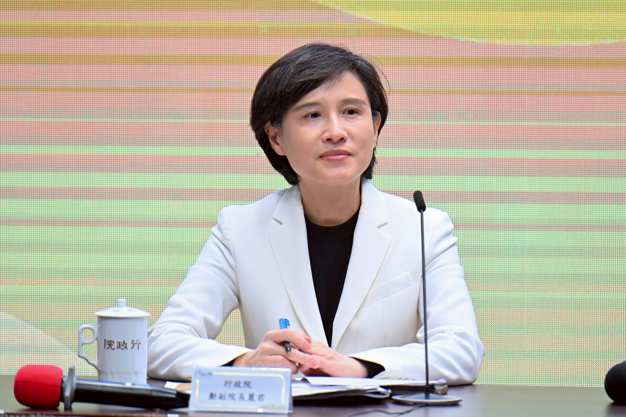 包括行政院鄭麗君副院長、張惇涵秘書長、林明昕政務委員、李慧芝發言人及財政部莊翠雲部長均出席今日記者會。