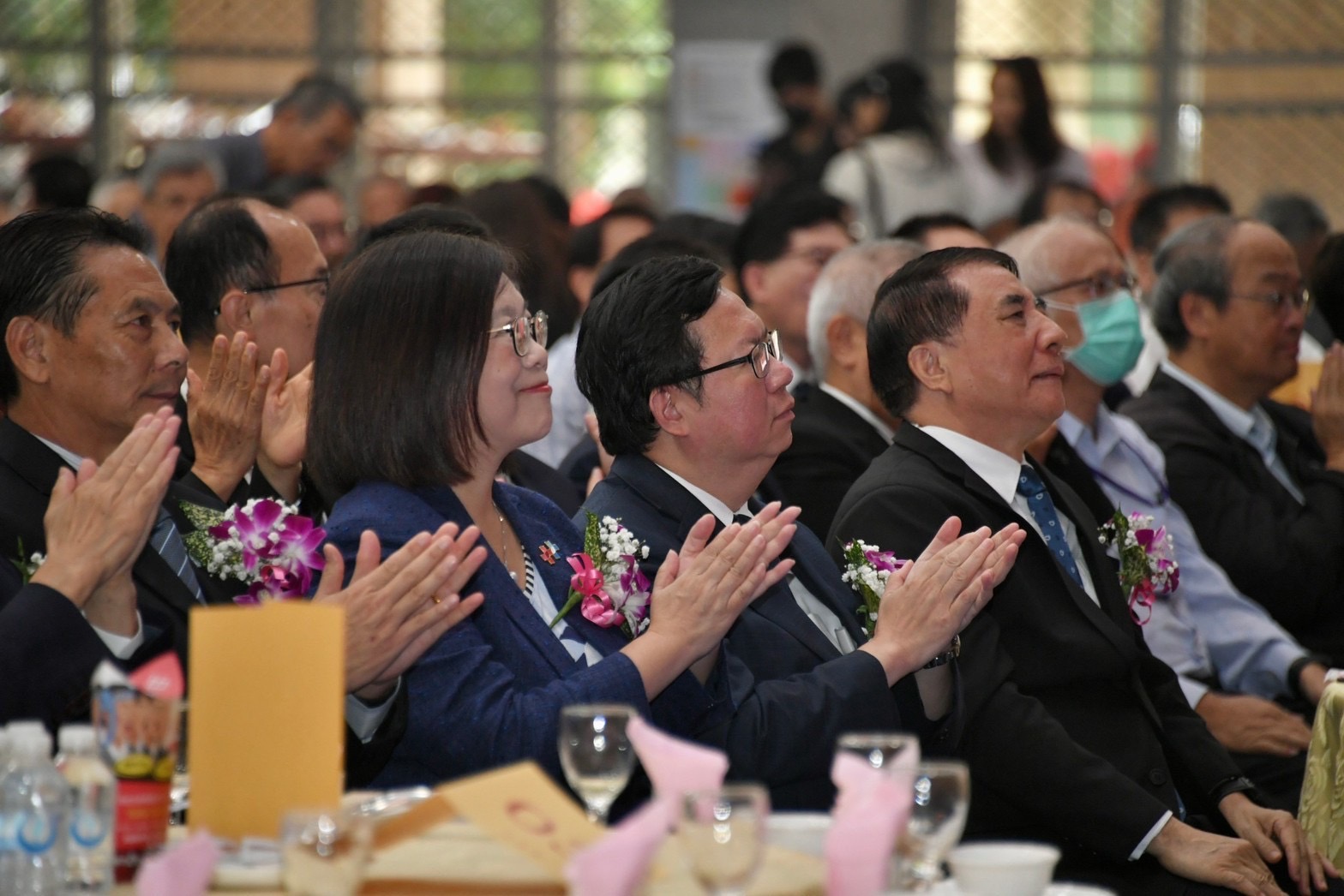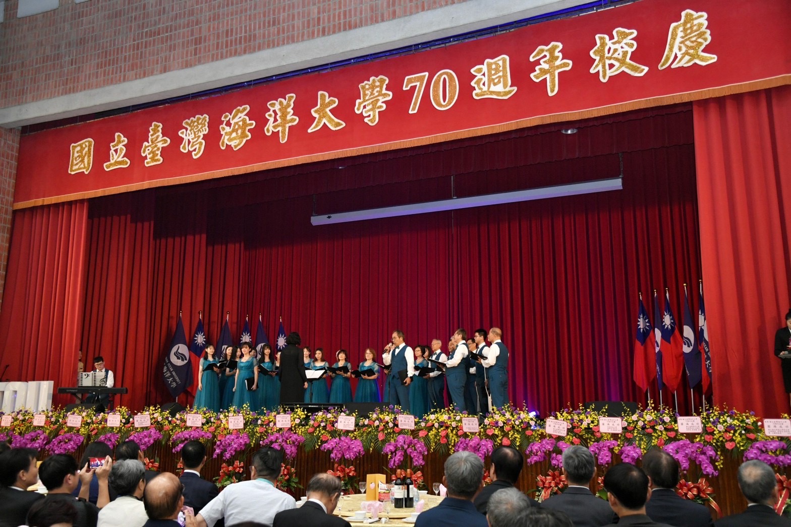 鄭副院長抵達會場後,首先與海洋委員會管碧玲主委、臺灣日本關係協會蘇嘉全會長、總統府林見松國策顧問等嘉賓一同欣賞海洋大學海韻合唱團《禮讚賀海洋》開幕表演,並觀看蔡英文總統祝賀影片。隨後,副院長致詞時指出,海洋大學除了校本部設在基隆外,在桃園觀音區及馬祖北竿鄉亦設有校區,他擔任桃園市長任內,即非常支持海大觀音校區的發展。而海大在教學創新、學術研究、社會服務等各方面,更是臺灣一流的頂尖大學,並持續朝綜合大學的方向發展。海大70年來不僅成為臺灣海洋人才培育的搖籃,更促進臺灣在航運、漁業、海洋科技及海洋產業等各領域不斷向上發展,為臺灣邁向海洋國家奠定非常重要的基礎,他要祝賀海大生日快樂,並期盼海大與臺灣一起成長,政府也會繼續大力支持海大校務發展。