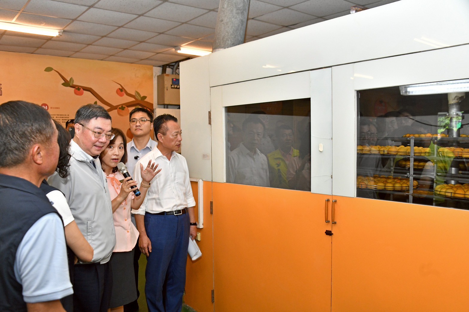 卓院長指出,近來天氣酷熱,人要吹冷氣,柿子等農產品也要吹冷氣,才能讓農產品舒適快樂成長、健康外銷,因此在處理、儲存及運輸過程中,農業部積極推動先進冷鏈技術,提供農漁民更多協助。卓院長特別感謝行政院蘇貞昌前院長於110年核定「建構農產品冷鏈物流及品質確保示範體系」4年中長程計畫,投入119億元,分別以67億元、19億元及33億元布局全國農糧、漁業及畜禽冷鏈發展。