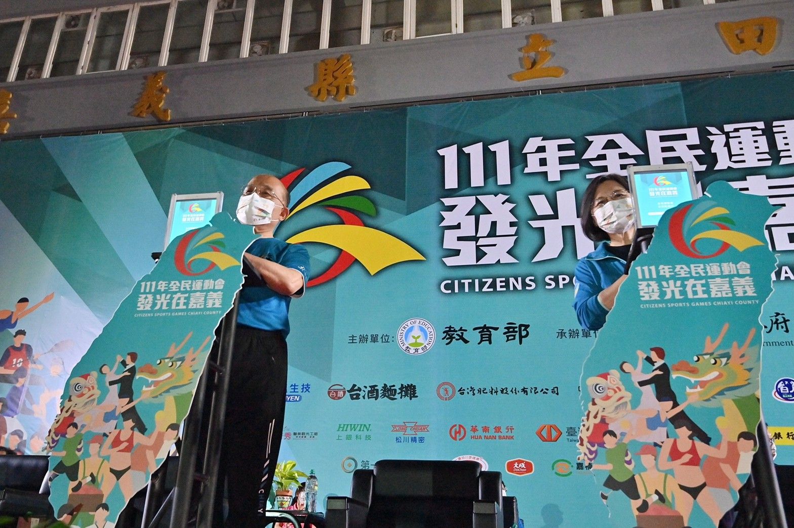 111年全民運動會今(8)日晚間在嘉義縣熱鬧開幕,行政院長蘇貞昌以大會主席身分與蔡總統共同出席開幕典禮。蘇院長於致詞時表示,運動可以保持健康的體魄,為鼓勵全民運動,因此政府自2000年起開始舉辦「全民運動會」,感謝嘉義縣翁章梁縣長率領縣府團隊,認真籌備本屆全民運動會。蘇院長也強調,蔡英文總統上任後,持續增加體育經費,希望推動全民運動,讓國民強健、國家富強,希望本屆全民運動會朝此目標邁進,發光在嘉義,並祝福運動會圓滿成功。