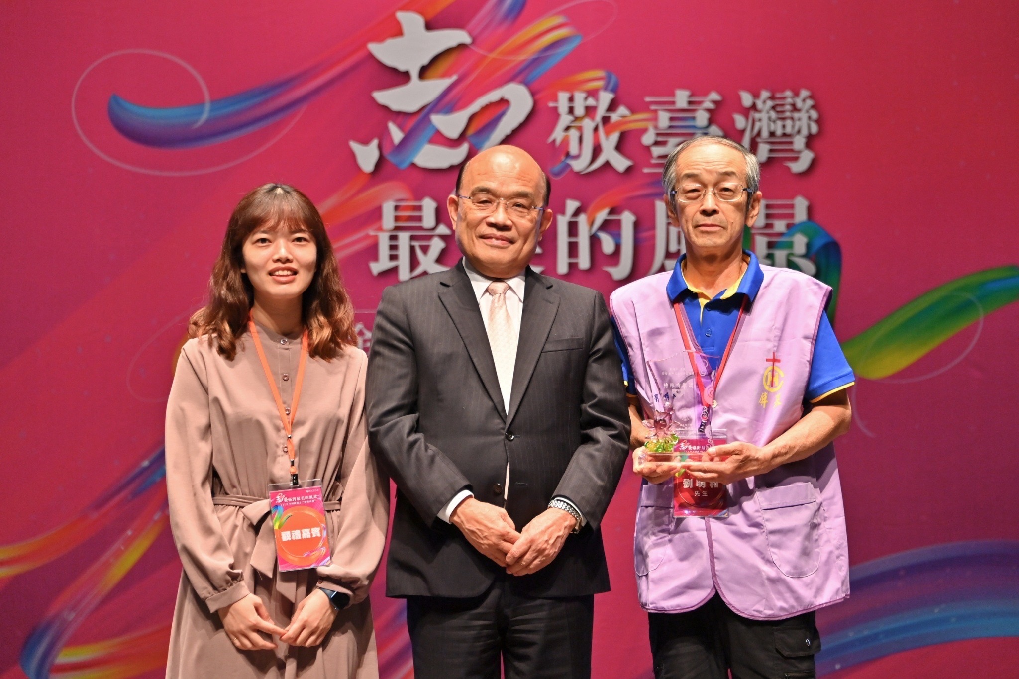 最後,蘇院長再度代表政府感謝所有投入志工工作的夥伴們,因為有大家的投入,社會變得更溫馨、更溫暖,也希望能將各位獲獎者的精神廣為傳揚至社會每個角落,讓臺灣處處有溫暖,國家更美好。
