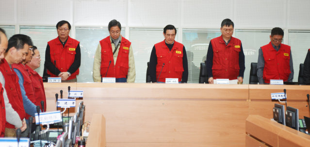 馬總統在會中表示,昨天一場突如其來地震,造成許多臺南鄉親天人永隔,許多人仍等待親人脫困而出,全國民眾正為受困生者祈福,希望他們早日脫困。總統也率領中心同仁一起為往生罹難者默哀。馬總統並指出,救援工作已進入黃金72小時的最後階段,請各單位不能鬆懈,中央與地方要充分溝通協調,合作無間。