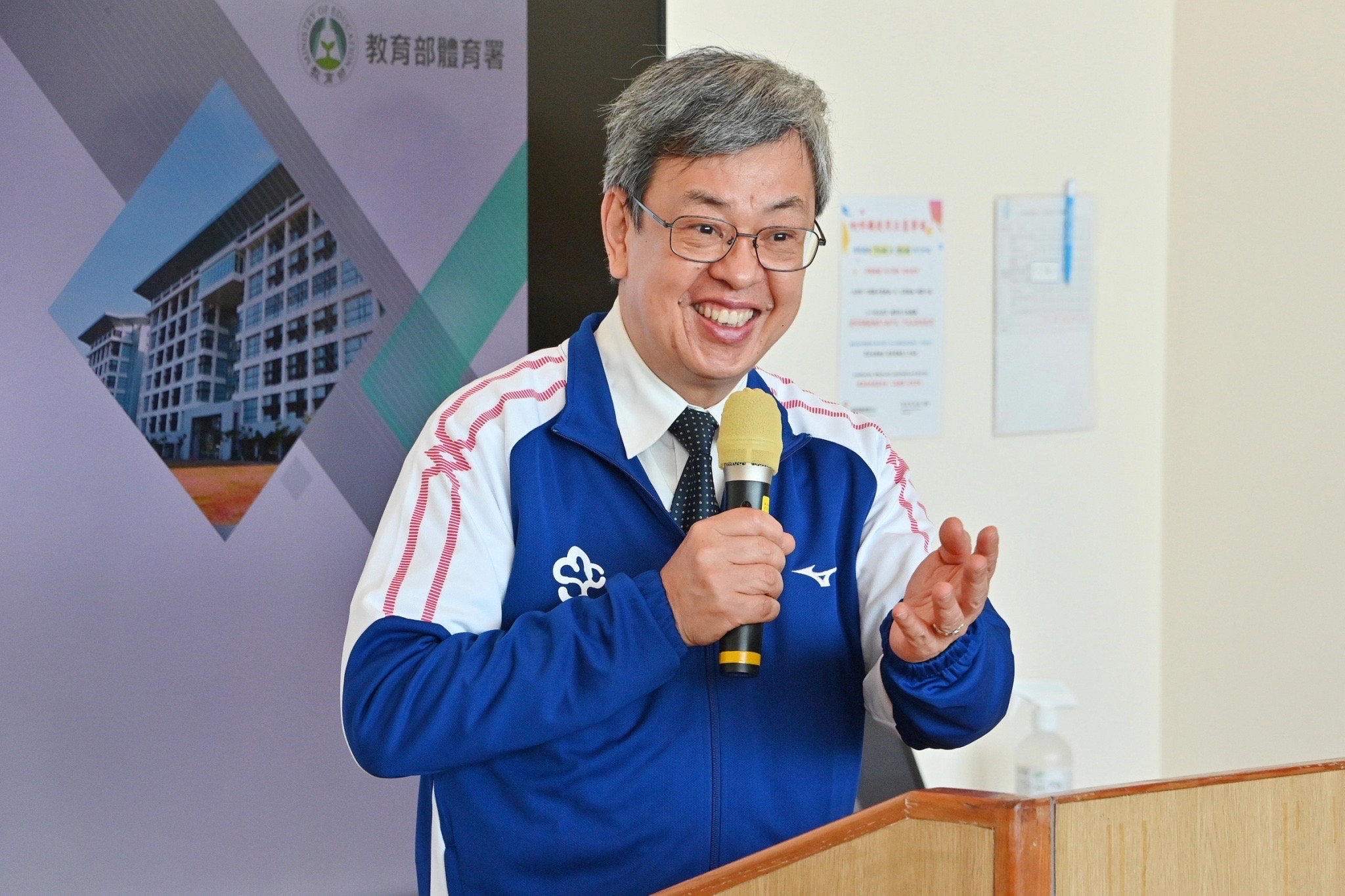 陳院長也特別感謝教育部林騰蛟次長代理體育署長的辛勞,行政院已核定由國立體育大學競技與教練科學研究所教授兼管理學院院長鄭世忠接任體育署長,鄭院長為運動醫學博士,陸續在中華奧會、足球與田徑協會擔任重要職務,並獲中華奧會林鴻道主席及中華體總葉政彥會長的支持,相信借重其長才,定能推動各項體育事務,為體育界服務。