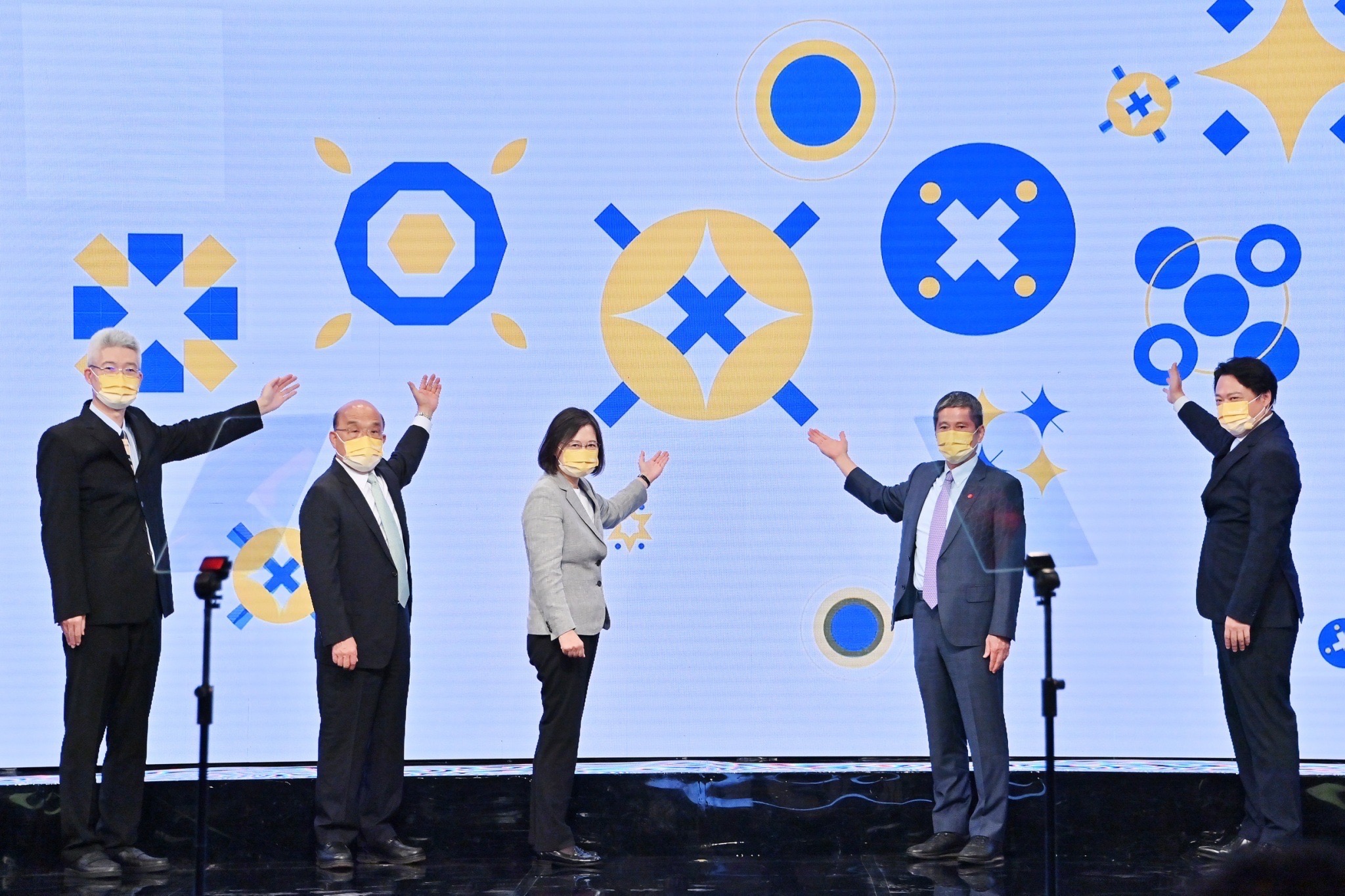 致詞結束後,蘇院長與蔡總統、文化部李永得部長、公廣集團胡元輝董事長及TaiwanPlus余佳璋代理執行長,在舞臺上共同將手比向後方LED螢幕,在主持人倒數聲中,螢幕也以照片與動畫方式呈現TaiwanPlus節目精華畫面,象徵TaiwanPlus電視頻道正式開播;啟動儀式圓滿完成後,貴賓們也一同合影留念,場面熱絡。