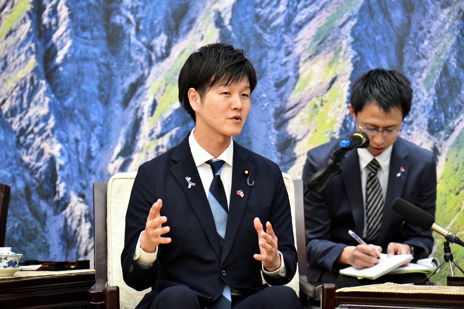 隨後,鈴木憲和眾議員致詞時表示,自民黨青年局於一年前開始重啟訪臺行程,當時全球疫情尚未緩解,臺灣為了迎接他們,克服重重困難,他也在訪程中結識時任桃園市長的鄭文燦副院長,並獲得許多協助,他要致上由衷的感謝。