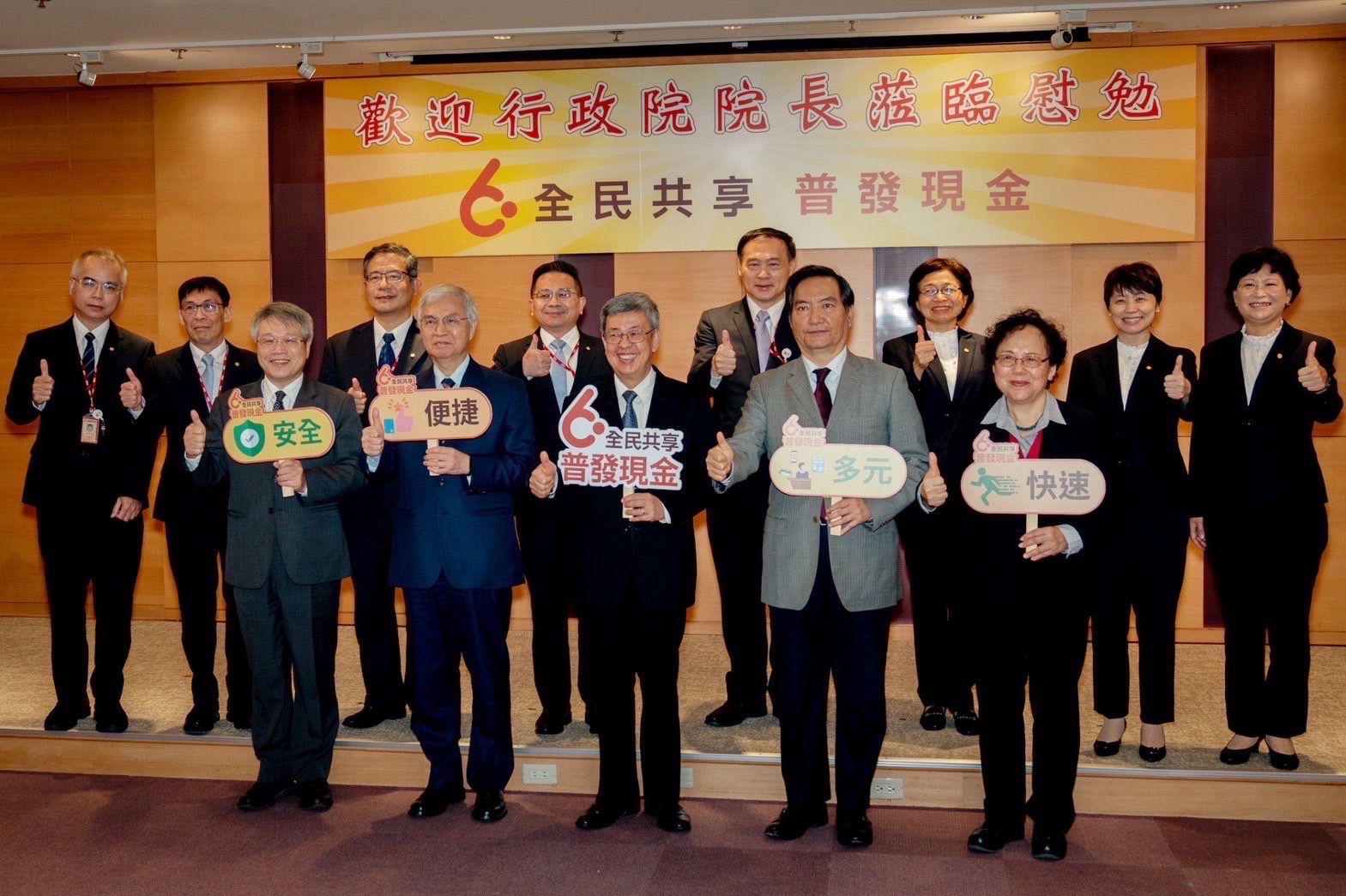 行政院長陳建仁今(9)日前往財金資訊股份有限公司,慰勉同仁辦理「全民共享普發現金」業務的辛勞。陳院長表示,普發現金上路迄今,已超過2,100萬人領取,領取率約90%,感謝中央銀行、金融監督管理委員會、財金公司及相關金融機構共同努力,讓民眾能夠獲得最好的服務。為強化疫後經濟與社會韌性,政府於疫後特別預算中還規劃許多福國利民的措施有待逐一落實,例如今(2023)年7月1日即將上路的基北北桃1,200元交通月票,期許大家能以普發現金的成果做為典範,持續朝福國利民的方向大步邁進。