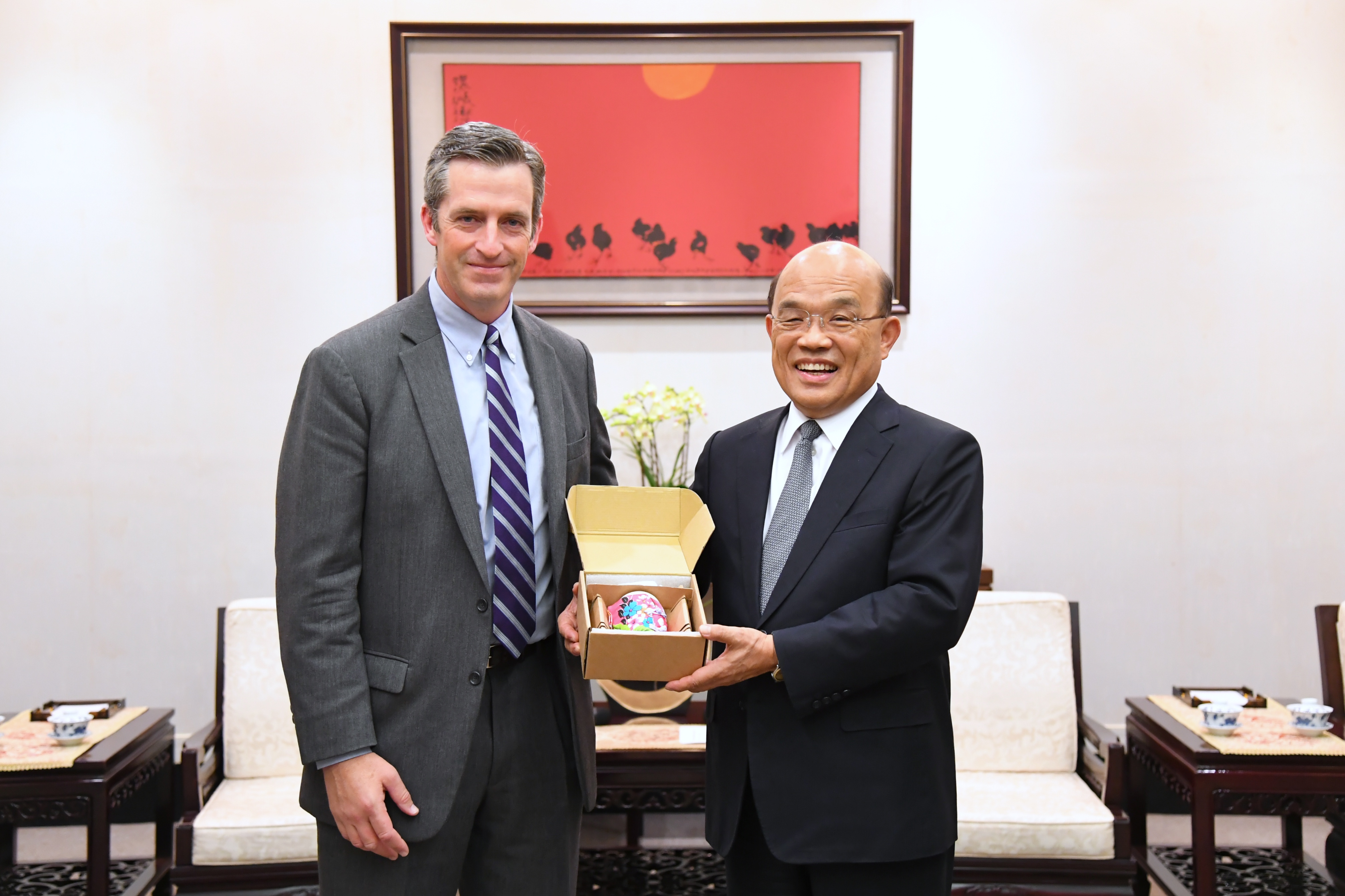 行政院長蘇貞昌今(16)日在行政院接見美國在台協會(AIT)主席莫健(James Moriarty)時表示,在台灣相關單位及AIT的共同努力下,台美關係持續增進,對此他表示肯定及感謝AIT及莫健主席對台灣的卓越貢獻。