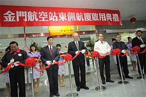 行政院長吳敦義今(26)日視察「金門尚義機場空側短期改善及航站區第1期擴建工程」新建東側航廈完工啟用情形時表示,因兩岸小三通金門尚義機場旅客人數與日俱增,提供安全完善的機場服務,對金門地區交通運輸及觀光發展助益良多,尤以小三通奠定大三通良好的基礎,也是落實馬總統擴大小三通的競選政見。 吳院長說,過去金門長期處於戰時體制下,是海陸空三軍駐守的基地,現在兩岸關係和平發展,但仍要保持自我防衛的國防力量,金門駐軍已較過去減少,並轉型為戍守國防之島,更要同時兼顧民眾的權益及福利,也就是要兼顧平時的建設,朝著海、陸、空等三個面向做重大的建設。 吳院長進一步指出,早期金門及廈門之間競爭的型態已轉為現在和平發展的競賽,台灣實施三民主義的建設,金門是三民主義建設的實驗區,也是與大陸和平競賽重要的窗口,在加強海上及機場設施以提升競爭力是非常重要,也是政府照顧金門同胞民生的責任。 吳院長說,目前金門尚義機場航站區第1期擴建工程第一階段新建東側航廈已順利完工,為因應未來可預期面臨機場旅客流量增加問題,行政院已於98年11月3日核定未來航站區第二、三、四期等工程完工後可達350萬人次年服務容量,請交通部儘速辦理後續機場擴建,並加速金門海運如碼頭設施改善及金門大橋建設,以增進金門與廈門之間海上交通便利,使金門風貌焕然一新。 吳院長今日在行政院秘書長林中森、交通部長毛治國及金門縣長李炷烽等人陪同下,視察金門尚義機場新落成的東側航廈入境大廳、行李提領區及迎客大廳後,也對相關工程主辦機關之辛勞與努力表示肯定與嘉勉。