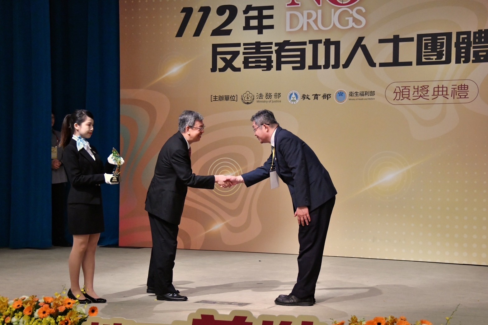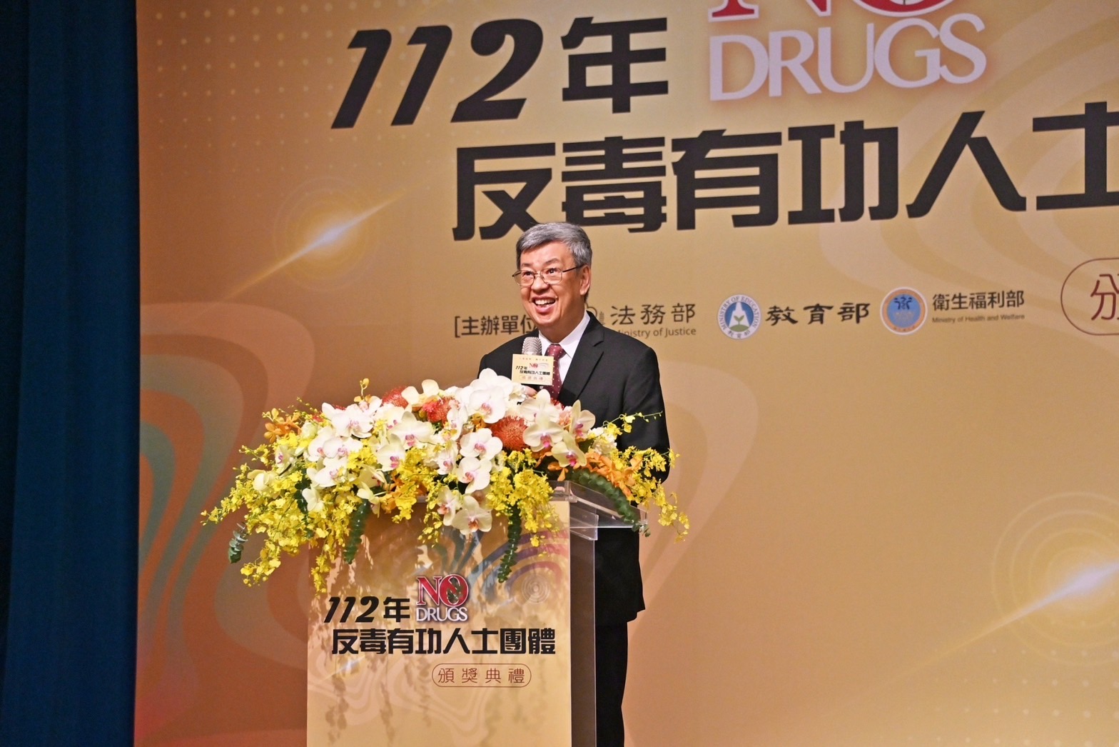 行政院長陳建仁今(26)日陪同蔡英文總統出席「112年全國反毒有功人士、團體頒獎典禮」時表示,跨部會的努力是臺灣反毒成功的重要關鍵,政府經過6年多努力,統合6大緝毒系統,在毒品查緝上取得相當亮眼的成績,有效降低毒品的新生人口比例,有效控制施用新興毒品死亡人數。行政院在蔡總統要求下,從預算、法律、制度等多元面向,持續推動防毒、拒毒、緝毒等工作,他感謝全體反毒工作同仁的辛勞付出,讓反毒工作不斷精進,也希望大家在反毒工作上繼續努力,讓臺灣成為亞太地區的反毒典範。