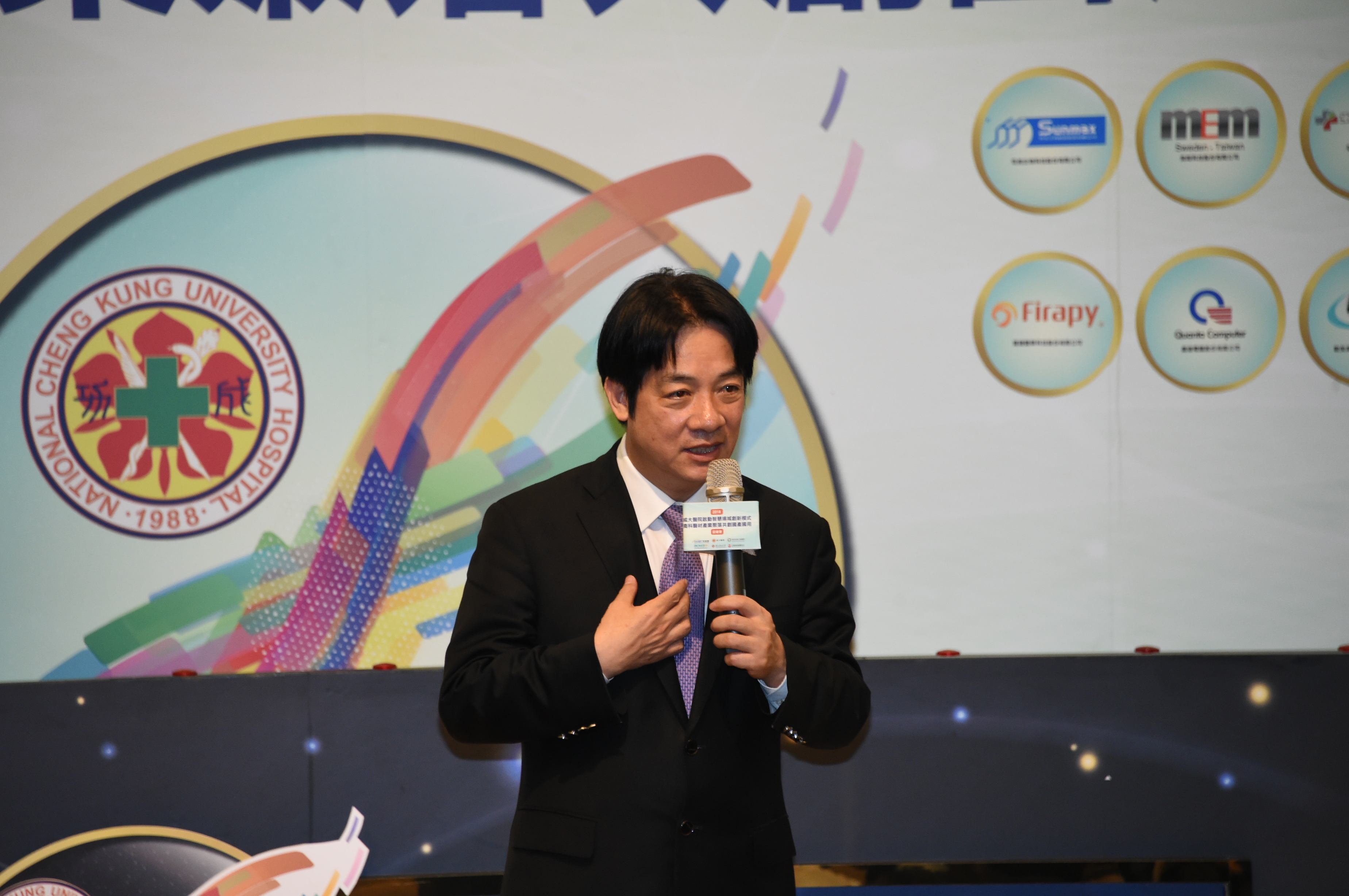 賴院長表示,我國在醫療領域具國際水準,科技及資通訊產業也是國際一流,具堅實的工業基礎。感謝成大醫院楊俊佑院長及成功大學蘇慧貞校長,與國產醫材業者合作,展現勇氣、智慧及遠見,他身為校友,以成大為榮。