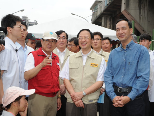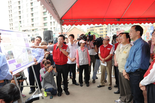 為關心地方防洪重要建設進度與今年防汛整備情形,行政院長江宜樺今(25)日上午前往新北市新莊樹林地區視察塔寮坑溪治理情形。他在聽取經濟部水利署簡報後表示,該地區以往淹水受影響人口約達4萬人,但近年已陸續完成的工程,使得影響人口僅剩2千9百多人,的確呈現相當成效。
