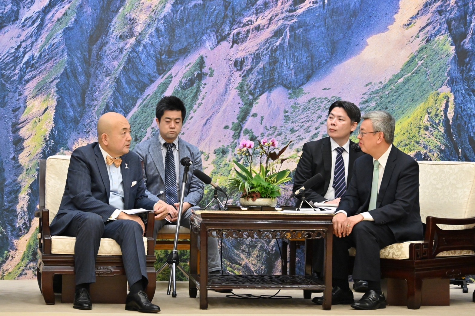 陳院長表示,片山代表近日在日本台灣交流協會台北事務所官網發表的就任致詞中提到,此次派駐臺灣的使命,包括為臺灣增加更多「日本粉絲」、學習臺灣社會文化,以及增進對臺灣的理解。院長說,臺日兩國情誼深厚,相信臺灣各界人士皆會鼎力相助,也歡迎片山代表能與我國一同努力,共促臺日友好互動,讓臺日關係更上層樓。