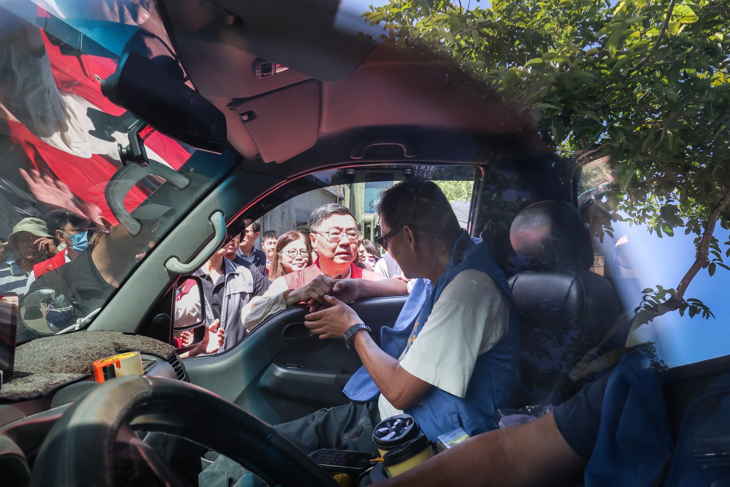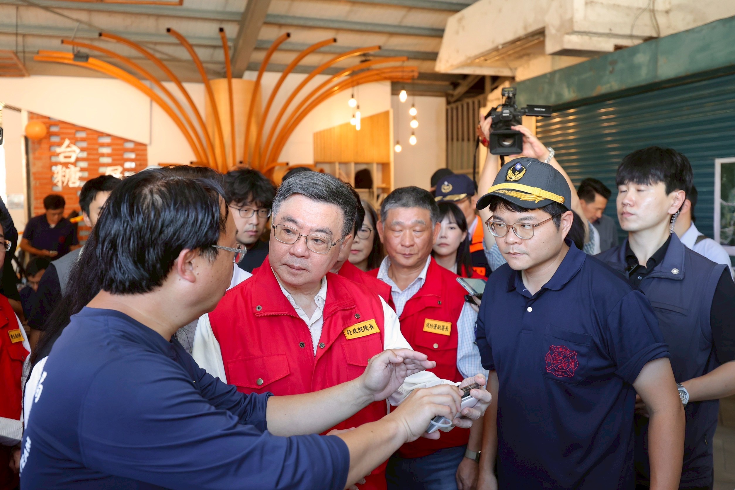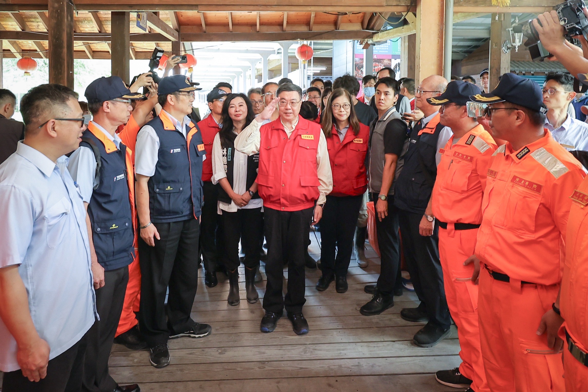 致詞結束後,卓院長特別慰問各縣市前來前進協調所支援救災的警消、國軍及海巡同仁們,並叮囑大家工作之餘也要把握時間吃飯休息;隨後,卓院長也關心物資集結處所各項救援物資配送情形,並向載送物資的司機大哥致謝。