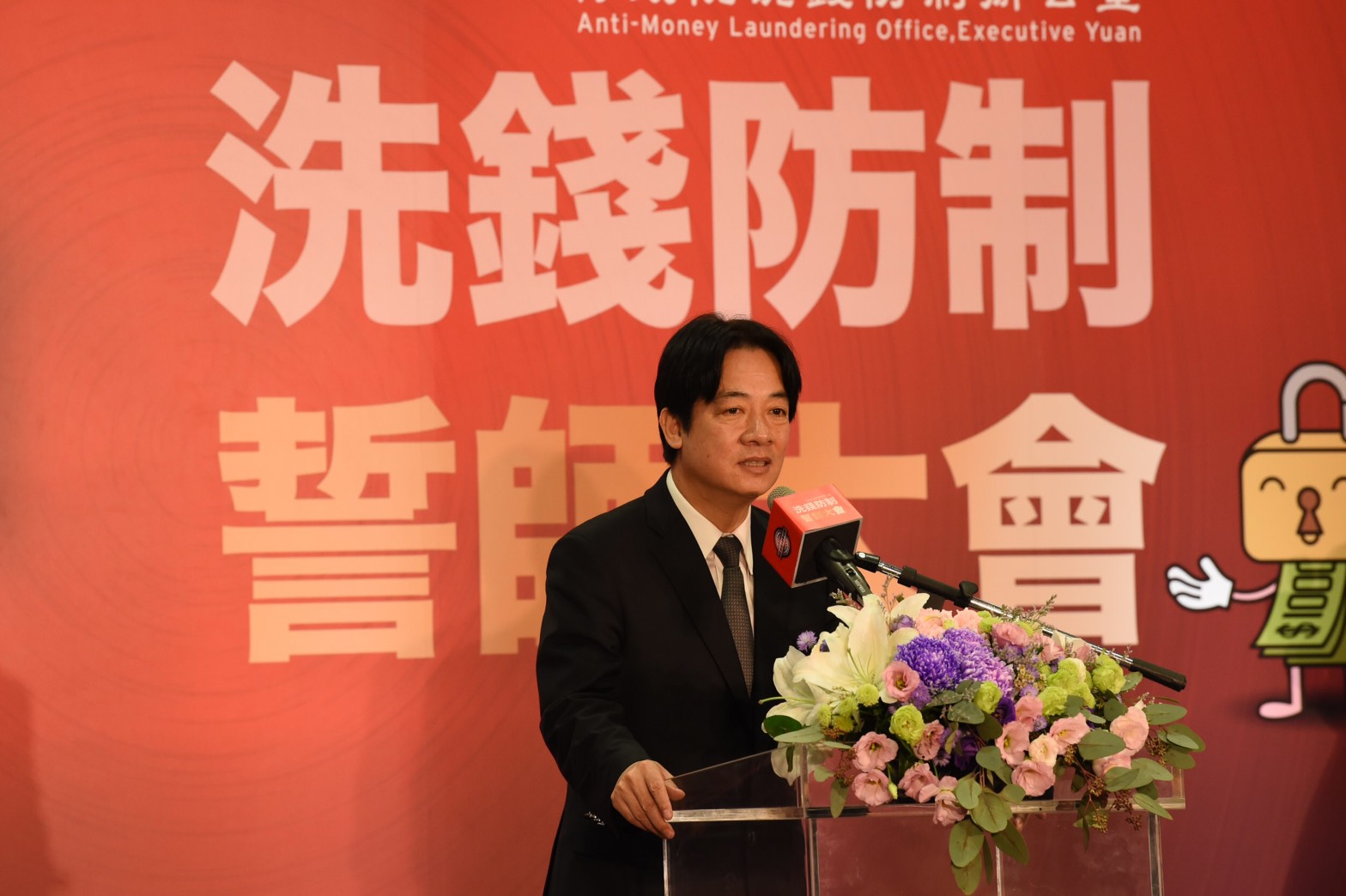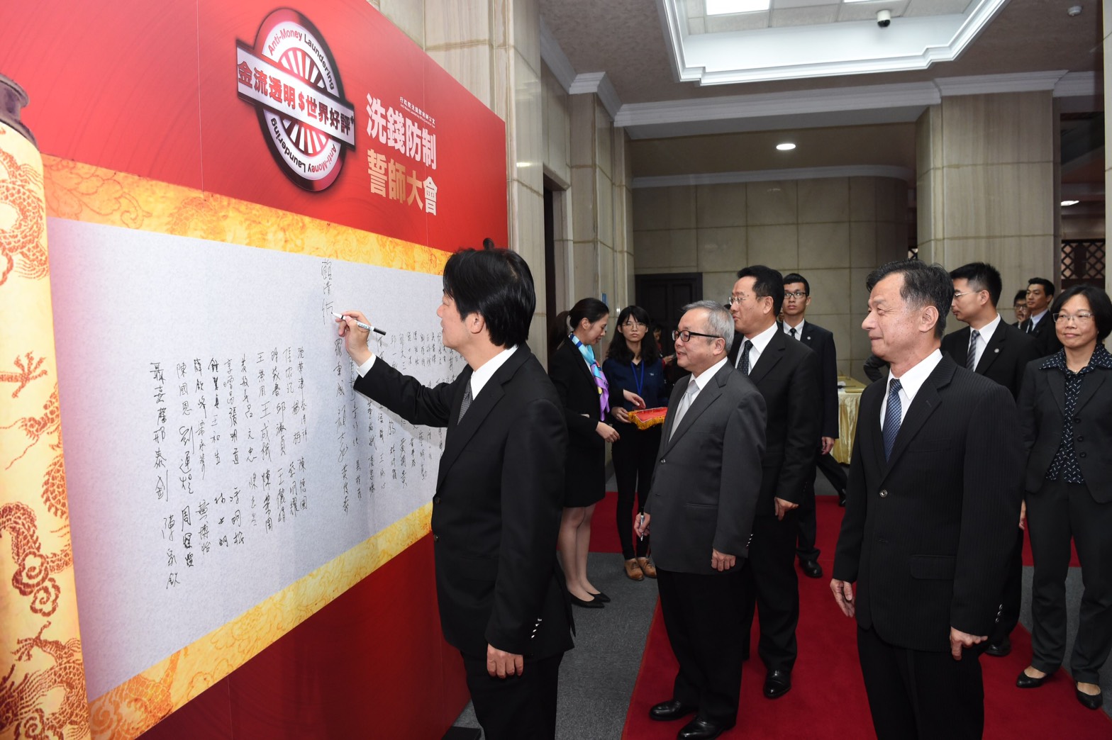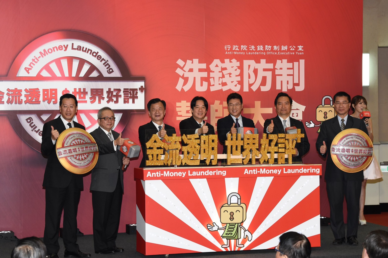 行政院今(22)日舉辦「金流透明 世界好評+」宣誓記者會,邀請部會及產業代表出席,宣示政府與民間積極爭取明(107)年11月亞太防制洗錢組織第三輪相互評鑑順利通過的決心。行政院長賴清德致詞時表示,洗錢防制工作需政府與民間的合作及參與,希望全民共同支持,台灣一定要在明年的評鑑獲得佳績。
