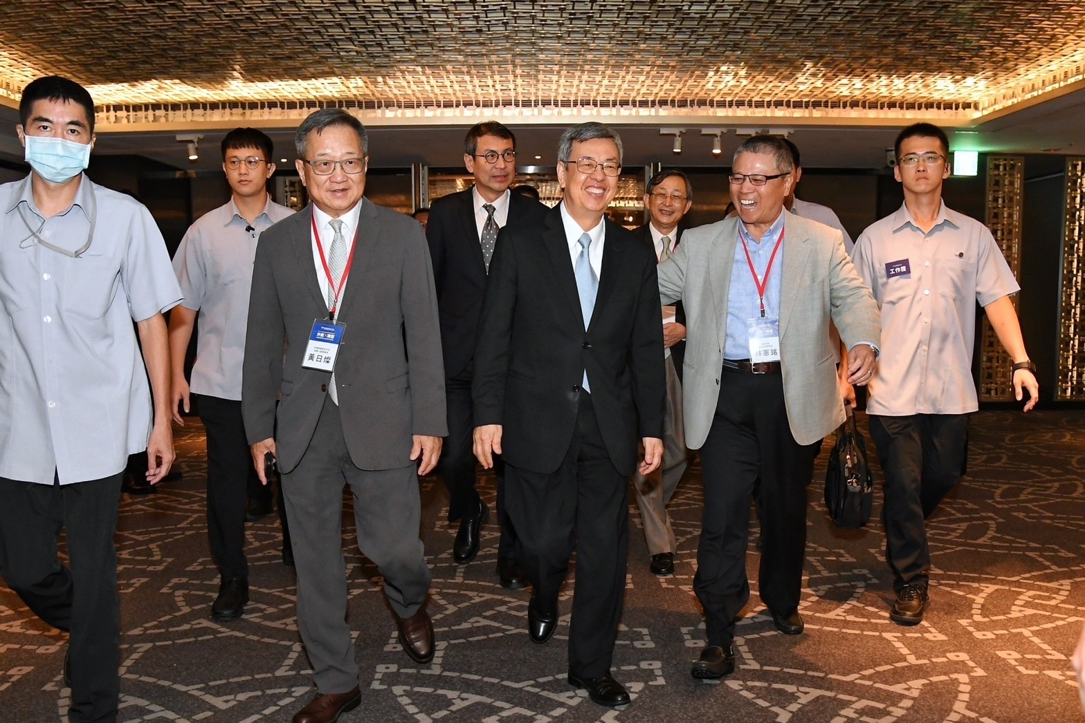 陳院長強調,蔡英文總統2016年就職以來,積極推動產業升級轉型,期望透過「5+2產業創新計畫」和「六大核心戰略產業」,改善占臺灣企業最大部分的中小企業體質,促使傳統產業升級再造。此外,政府也關注於協助製造業、科技醫療與健康等領域朝向智慧化與低碳化發展。