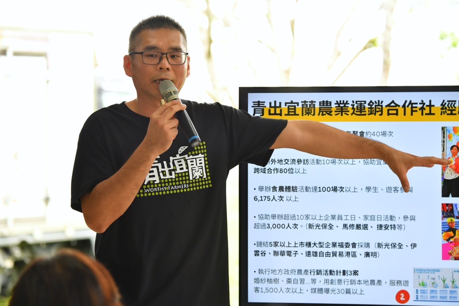 卓院長指出,讓國人吃得安心,是大家共同的心願,今日訪視的青出宜蘭合作社使用無人遙控「植物保護機」等智慧科技,精準噴灑植保資材及肥料,並積極推動「校園食農列車」,讓小朋友更認識宜蘭在地的水稻、金棗及三星蔥等特色作物,而三星蔥已成為具有地方特色及品牌價值的農產品,只要掛上三星蔥招牌的蔥油餅商家,往往都門庭若市。此外,青出宜蘭合作社也成功集結約4、5百名地方青年朋友,共同打造農村多元面貌,建立農村關係人口,相信透過如此堅強的核心團隊,一定能再連結更多關心地方發展的青年,傳承交流經驗。他認為,青出宜蘭合作社具有相當經營規模與經驗,為地方創生的成功典範,期盼國發會能夠複製其運作模式到其他地方,加速地方創生推動的速度與成效。