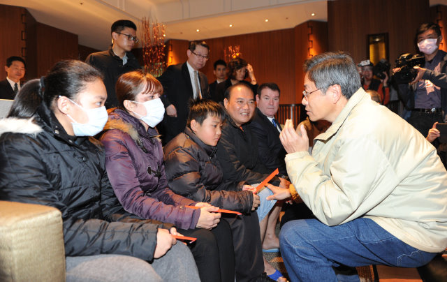 隨後,張院長至香格里拉臺南遠東國際大飯店探視蘇益民一家四口,關心他們現在的生活情況,也詢問二位子女即將開學的準備情形。張院長希望他們安心住下來,並為他們加油,也期許他們堅強。蘇益民先生則表示感謝社會大眾的幫助。