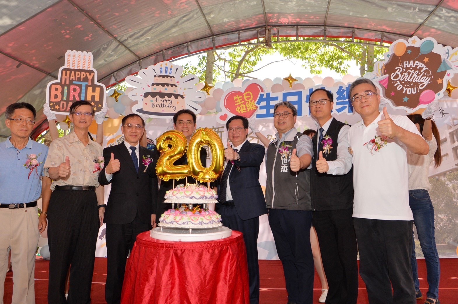 鄭副院長致詞時,感謝回到新屋分院參加20年慶的員工,並特別介紹首任分院長何豐名醫師及范姜宇龍主任、盧佩吟護理長等篳路藍縷,是創立醫院的元老,隨後與黃世杰委員、歷任分院長陳瑞昌醫師、王偉傑醫師、鄭明德醫師等人一起見證在地的志聯工業股份有限公司潘仲良董事長捐贈社區健康巡迴車ㄧ輛,協助社區老弱婦幼就醫更加便利,並切開院慶慶生蛋糕,祝賀該院繼續成長、為更多病患服務。