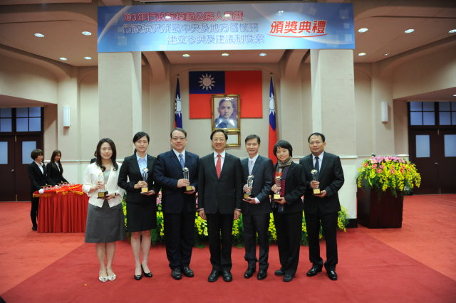 行政院長江宜樺今(13)日主持「103年行政院模範公務人員暨行政院與所屬中央及地方各機關建立參與及建議制度獲獎機關頒獎典禮」時表示,我國公務體系中,存在許多勤奮、守法與不斷興利除弊的優秀公務人員,還有認真負責的機關,因為他們的努力,讓國家得以不斷進步。此外,江院長也鼓勵各機關重視優秀人員選拔,讓國家文官文化朝正向發展,締造國家之福。