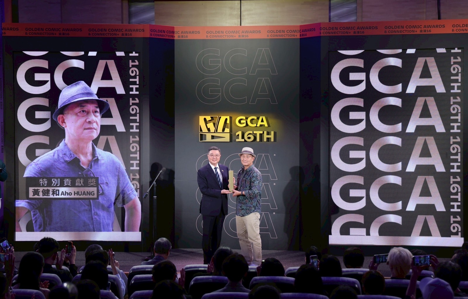 致詞結束後,卓院長頒發「特別貢獻獎」予黃健和先生,表揚其在漫畫領域卓越貢獻。包含行政院李慧芝發言人、文化部李遠部長、李靜慧次長、行政院中部聯合服務中心吳音寧副執行長、何欣純立委、臺中市政府黃國榮副市長等均出席今日頒獎典禮。