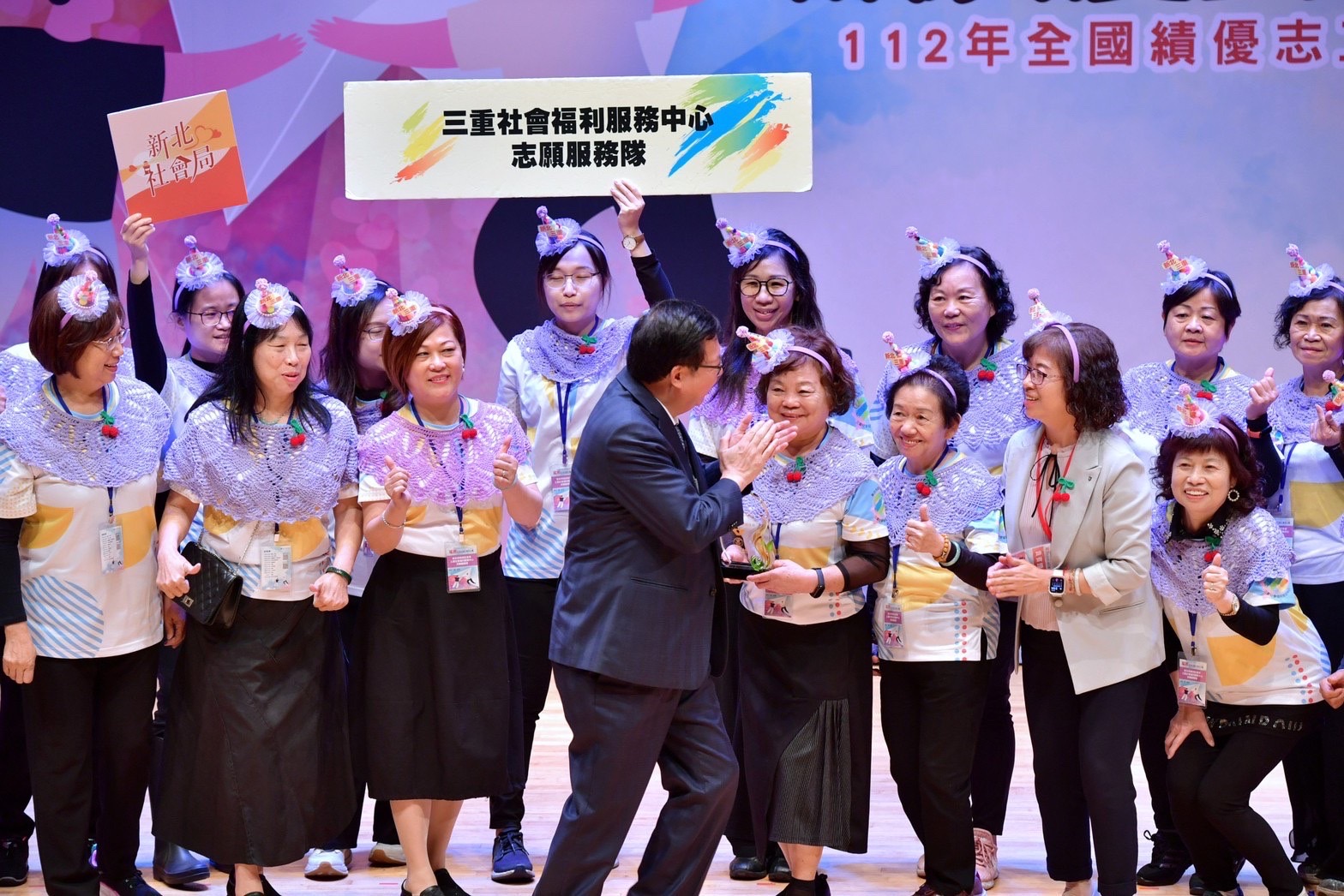 鄭副院長指出,每年12月5日為「國際志工日」,臺灣是全世界少數頒布《志願服務法》,且發給志願服務證予志工的國家,目前全國志願服務團隊已達2萬多隊。另外,臺灣預估2025年將邁入超高齡社會,屆時65歲以上人口占比將達20%,因此政府也鼓勵高齡者參與志願服務,此次獲得金牌獎的志工共472位,其中65歲以上得獎者高達412位,占得獎志工87.3%,而「金牌志工」必須從事志願服務超過8,000小時,能夠獲此殊榮的長者相當不容易,充分展現樂活樂齡、退而不休的精神,政府也會持續促進「高齡社會參與」,並鼓勵更多高齡者參與志願服務,成為「樂齡志工」。