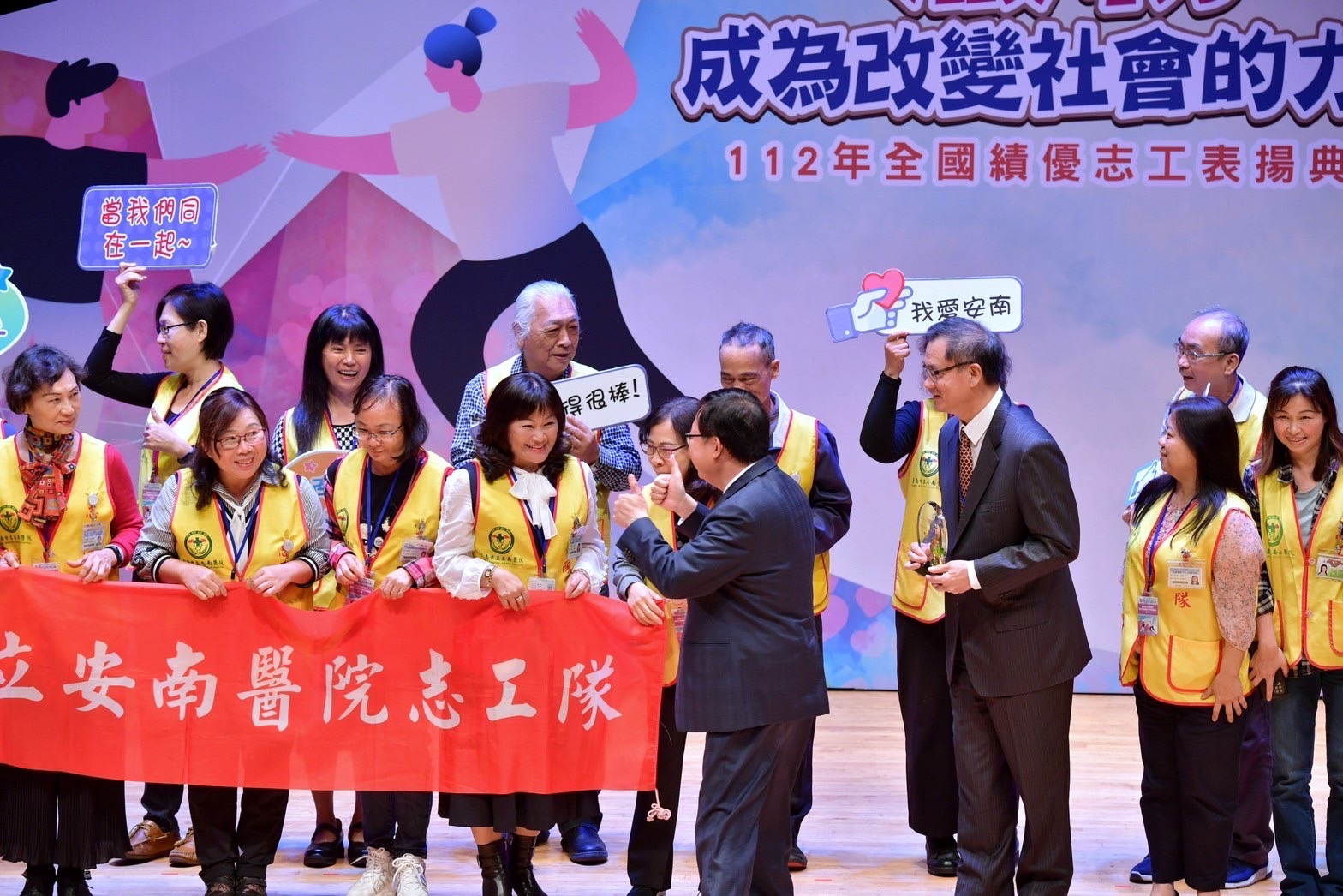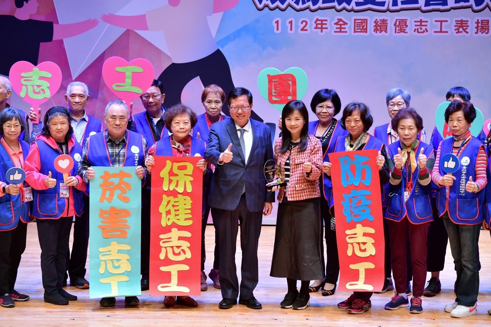 鄭副院長表示,臺灣約有110多萬名志工,占全國人口不到5%,他們願意在各領域無私奉獻付出,不僅展現生命的價值及光彩,更是改變社會的力量,讓大家看見愛與希望,因此他今日特別前來頒獎表彰所有全國績優志工的貢獻,為臺灣增加許多正面力量。