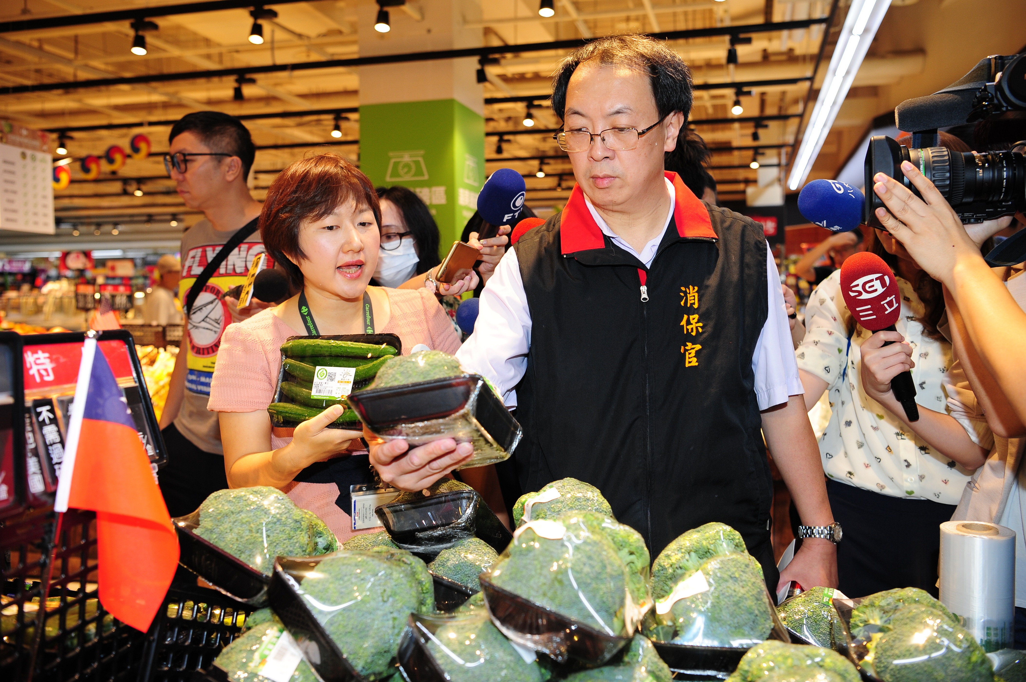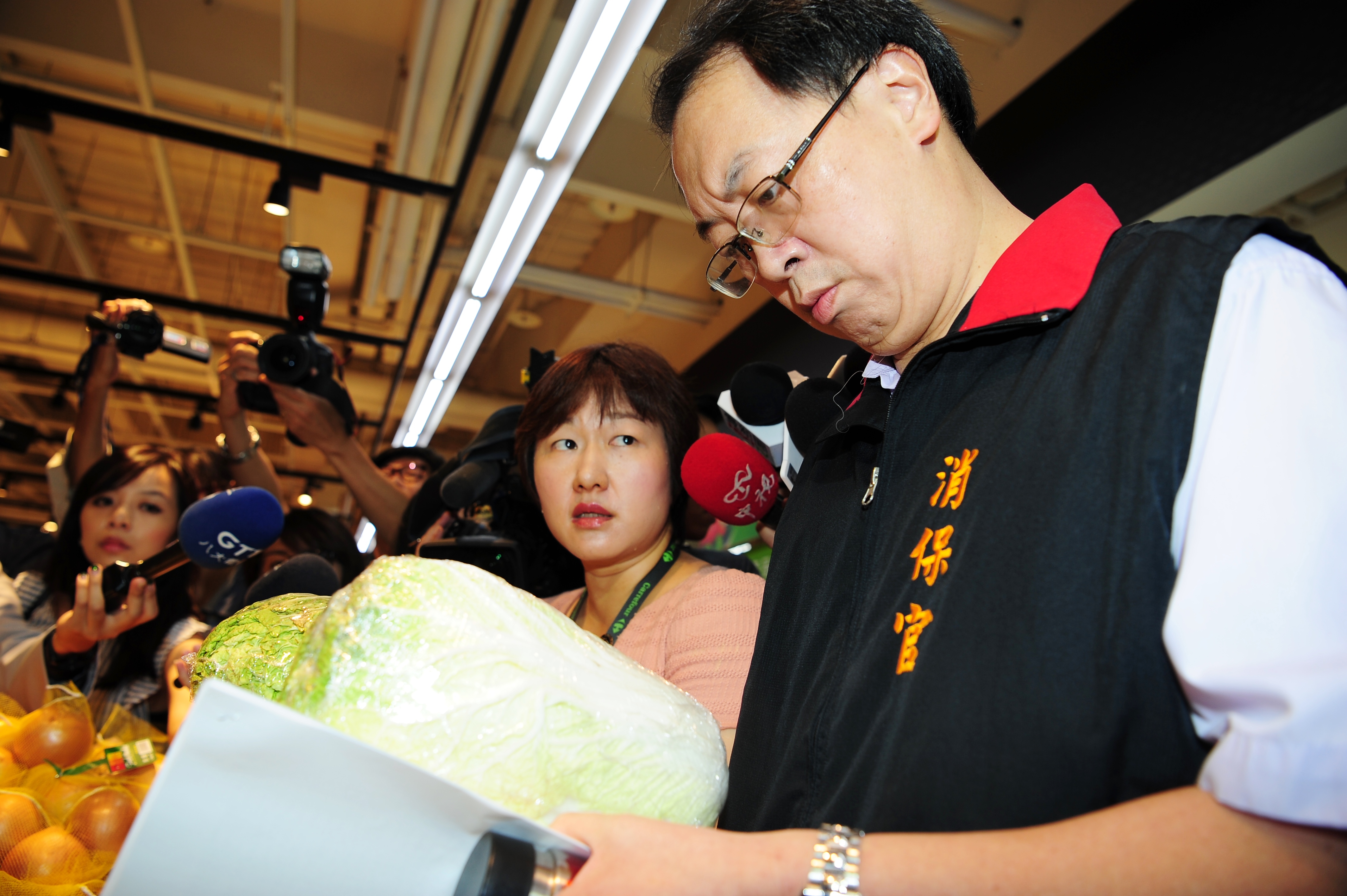 行政院表示,農委會、公平會及消保處於今(21)日9時共同啟動「1021蔬果價格聯合稽查」,由消保處消保官帶隊,分三組稽查赴大直內湖之家樂福、愛買、全聯、大潤發、頂好及東門、南門、通化與吳興等傳統市場合計10個地點,就高麗菜、白蘿蔔及洋蔥等11種蔬菜與番石榴等4種水果的價格變化進行實地調查結果,除家樂福內湖店外,均設有平價蔬菜專區,各賣場之高麗菜、青蔥、小黃瓜價格均已較消保處10月19日訪得價格下跌,至青江菜及空心菜等價格則漲跌互見。