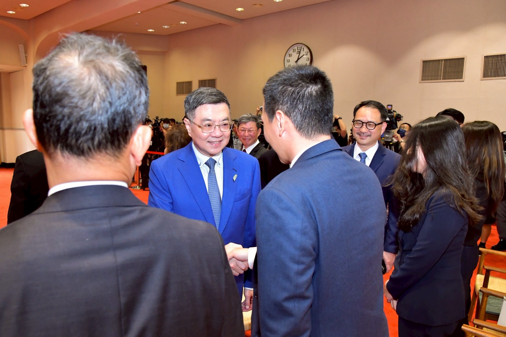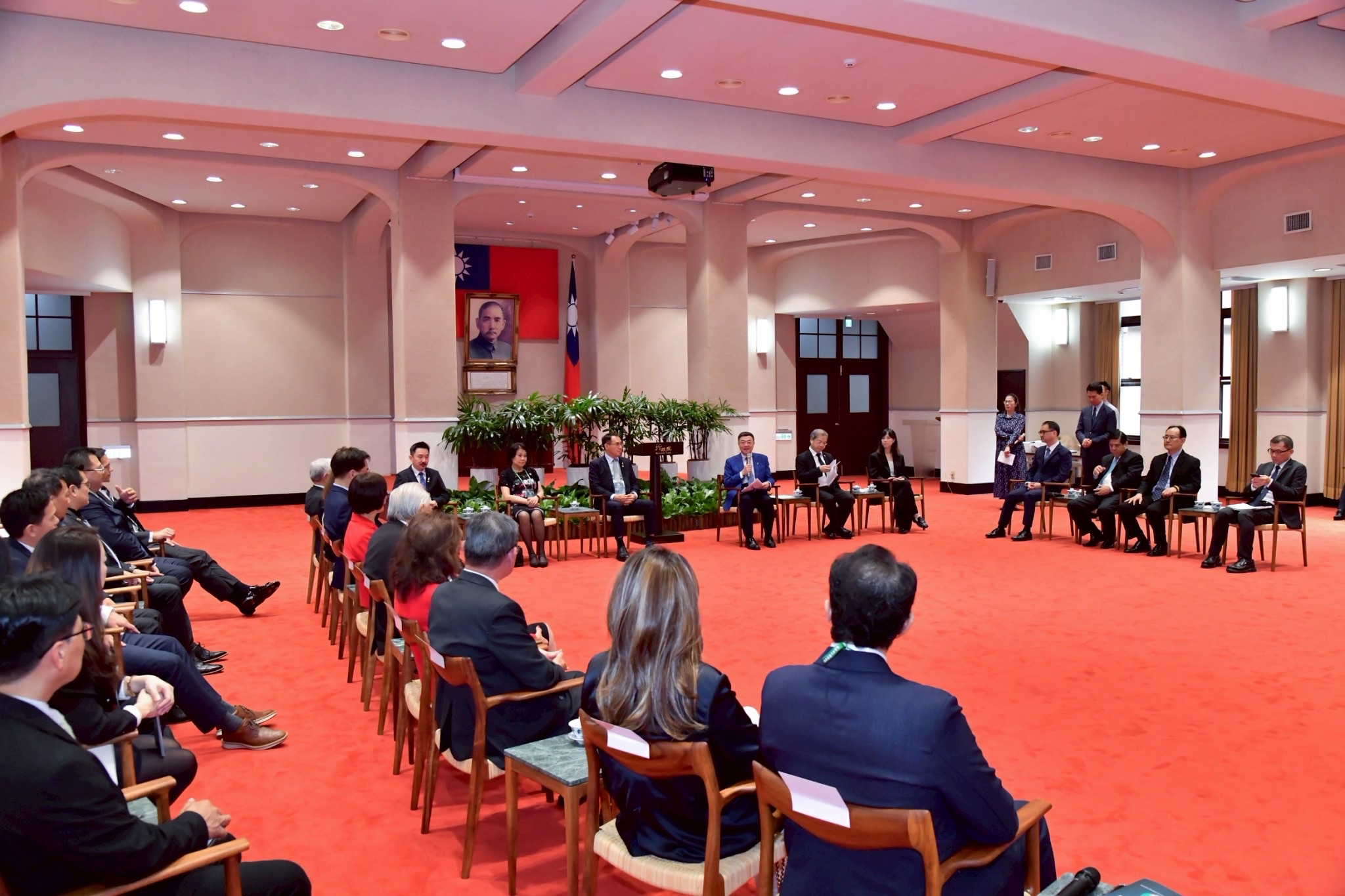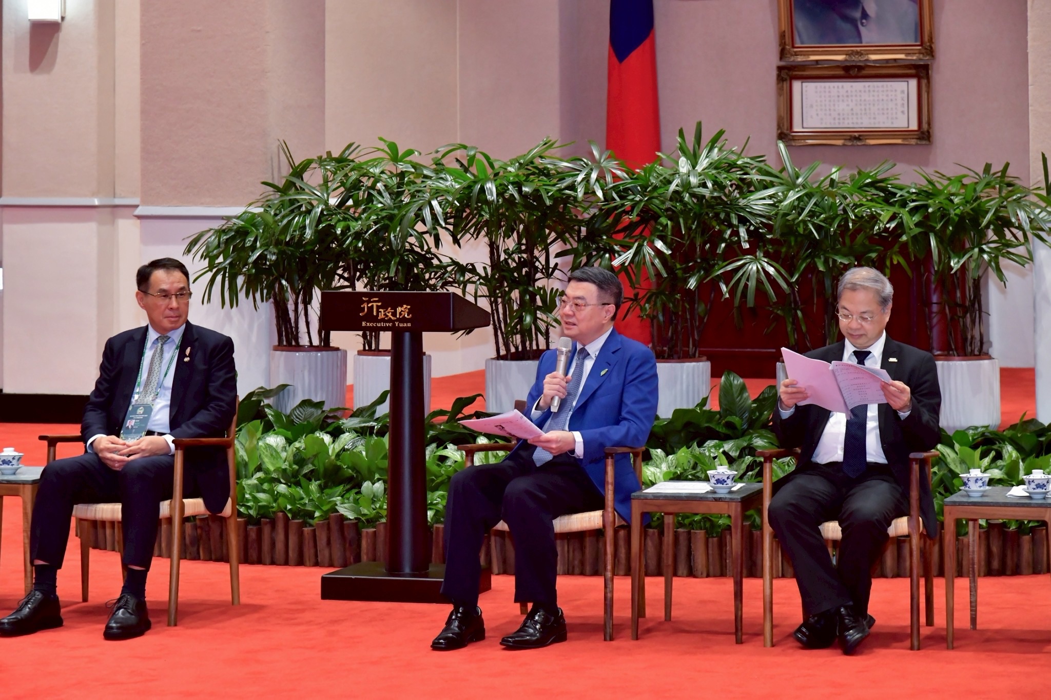 訪團一行由陳世修總會長率領,僑務委員會阮昭雄副委員長陪同,前來行政院拜會卓院長,行政院龔明鑫秘書長、李慧芝發言人、外交部陳立國次長也在座。