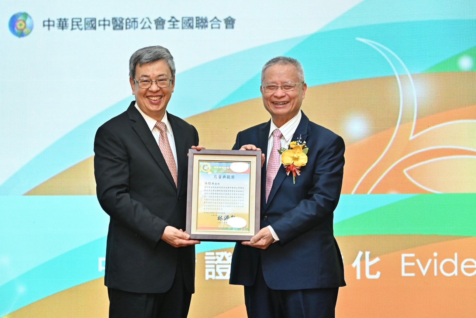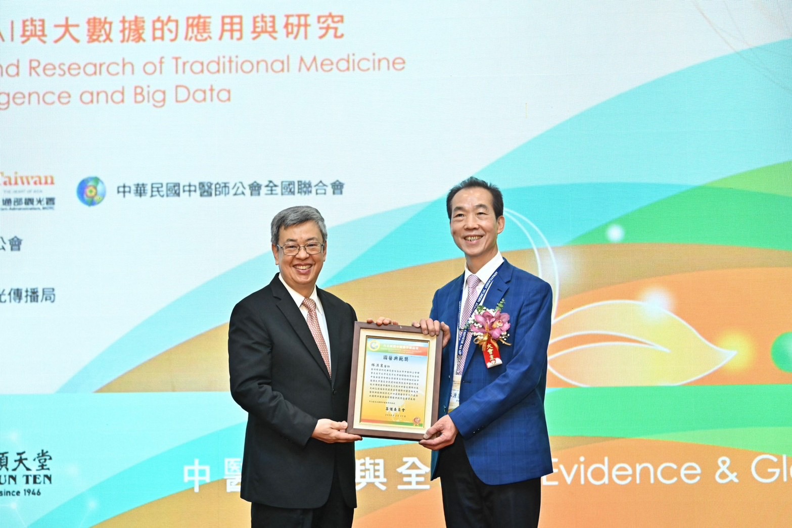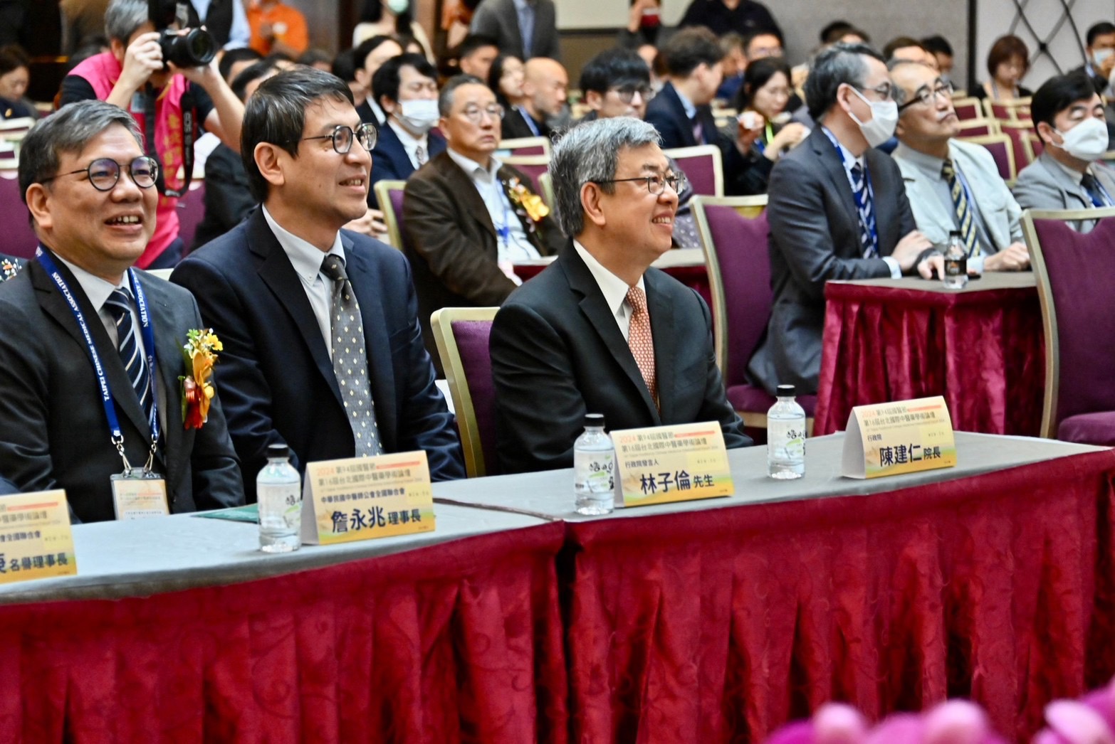 陳院長致詞時指出,臺灣第一位醫學博士杜聰明醫師,以研究鴉片、中醫藥等領域為主,並主張以科學方法研究傳統中醫藥,帶領臺灣中醫藥朝科學化方向發展,不僅藥品研發以實證為基礎(evidence-based),更有部分藥品進入臨床試驗階段,例如臺灣清冠1號;此外,中央研究院院士、中醫師公會全國聯合會林昭庚名譽理事長長期專研針灸領域,並編著《中西醫病名對照大辭典》,對於中醫針灸實證醫學的付出與貢獻,深受世界衛生組織(WHO)認可,實為臺灣中醫之光。院長感謝所有中醫藥先進們透過科學分析方法及技術進行研究,並結合AI(人工智慧)及大數據,讓臺灣中醫藥研究在全世界揚名立萬。