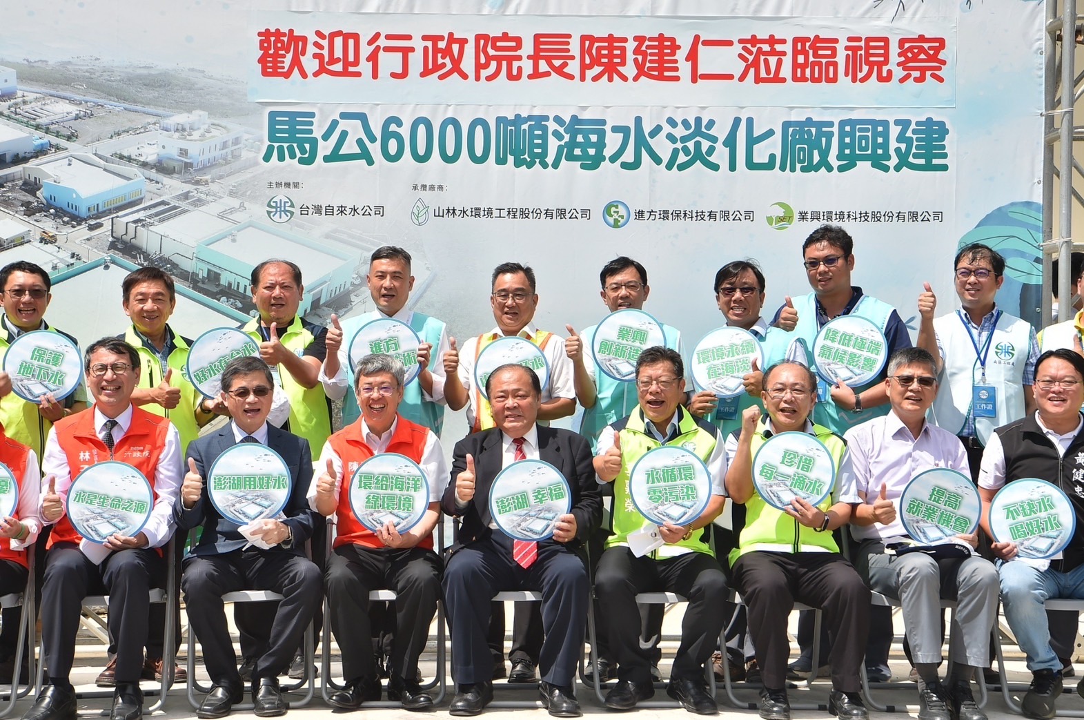 行政院長陳建仁今(12)日前往澎湖縣視察「離島地區供水改善計畫第二期馬公6,000噸海水淡化廠」時表示,目前澎湖的供水來源中,海淡水即占63%,比例相當高,因此如何讓海淡水的處理做得更好,是執政團隊努力的目標。他此行前來,就是要展現政府的決心,讓澎湖在供水方面沒有顧慮,能夠好好發展觀光;相關單位後續也將研商評估海淡水定價方式,以提供足夠水源,滿足民生需求及推動澎湖觀光產業蓬勃發展。